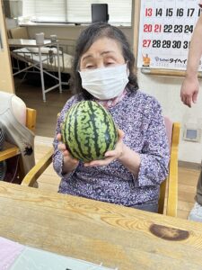「さてこのスイカは何キロあるでしょうか?」と重さ当てクイズ