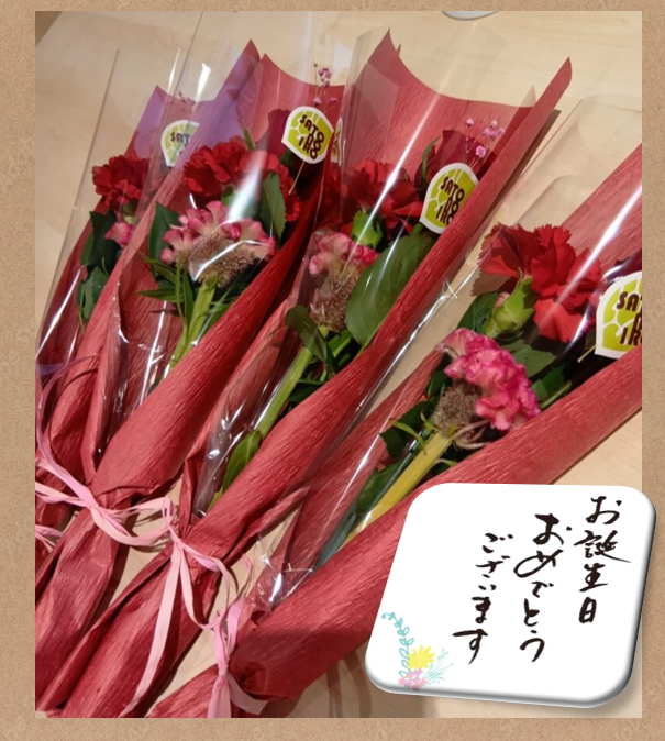 お誕生日おめでとうございます。ご長寿をお祈りし、施設より花束贈呈させていただきます😌💛