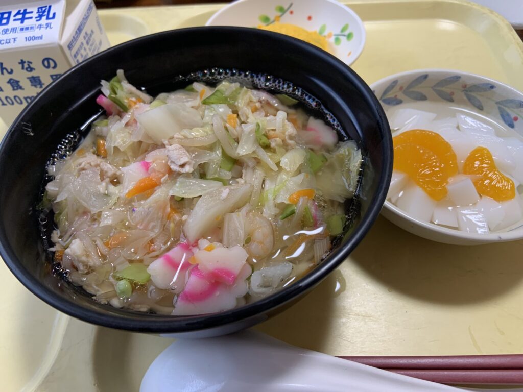 本日の昼食は「ちゃんぽんうどん」を提供しました。