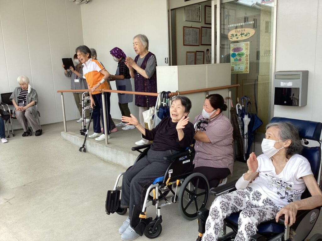 この日はホールを広く使い、ご利用者さまにお集まりいただいて、子どもたちの明るい歌声に包まれた温かい時間となりました😊
