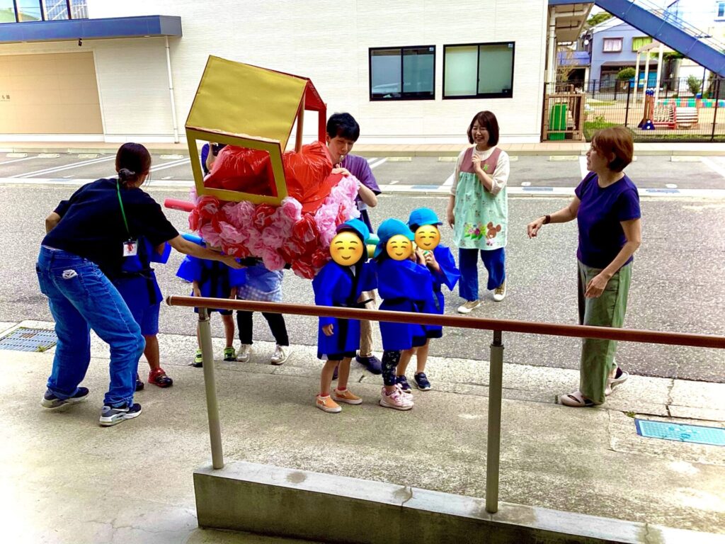 実はこの数日前、こども園の子どもたちは施設の前で「おみこし担ぎ」も披露してくれました!