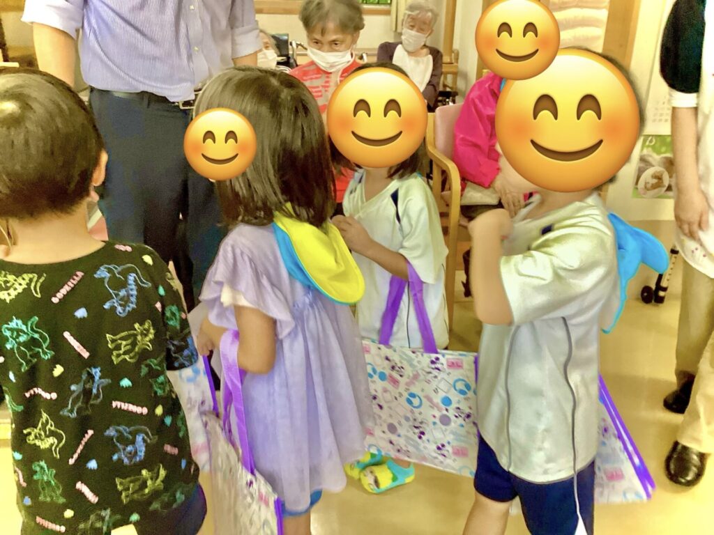 先日、施設の前にあるこども園の園児たちが遊びに来てくれて、笑顔あふれるひとときがありました!