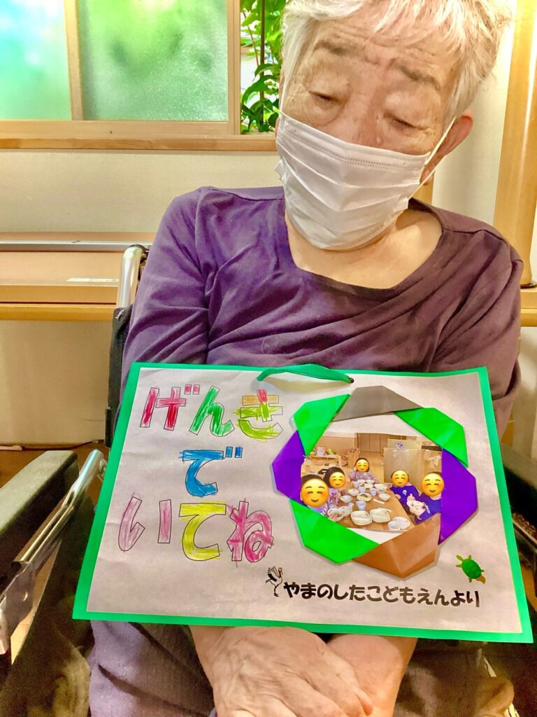 「元気でね」と書かれたメッセージと写真付きで、受け取ったご利用者さまもにっこり😊