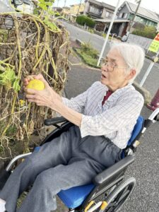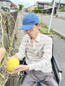 そのまま畑に行き、糸カボチャの収穫