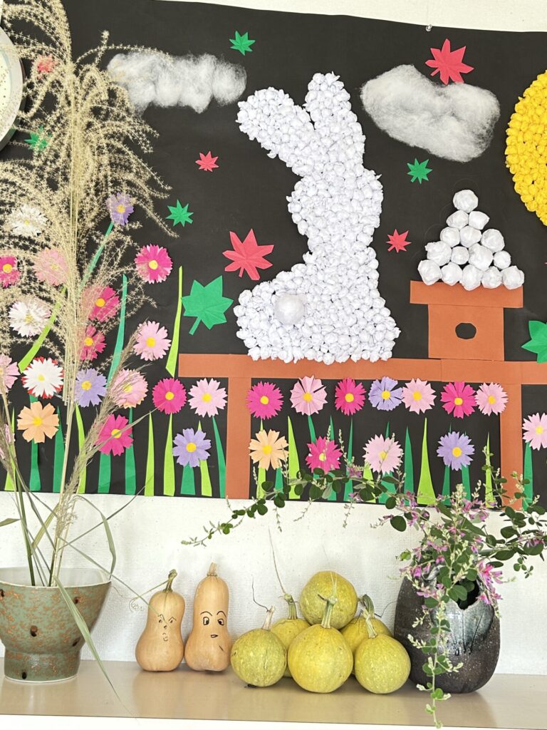 ススキに、萩の花、いとかぼちゃ、ピーナッツカボチャ