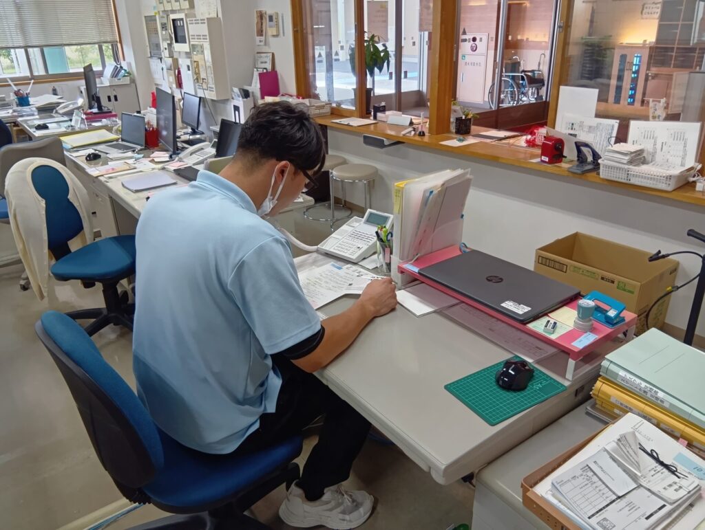 自力で歩けない利用者を車いすで火元から遠ざけ屋外へ避難しました。