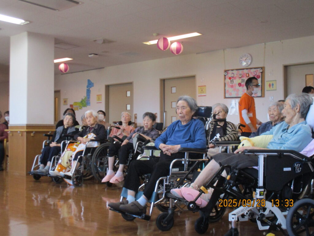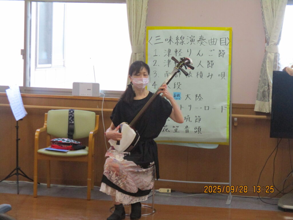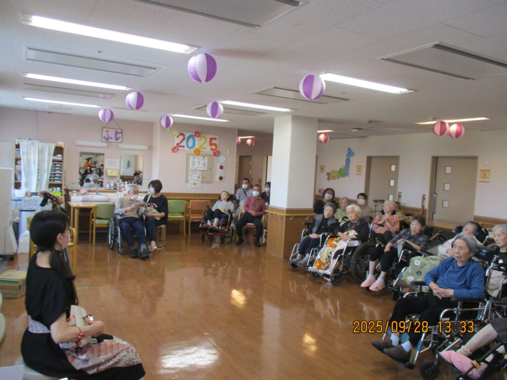 お知らせ 介護老人保健施設 江風苑 感謝祭②🥰 2025年10月22日 感謝祭の様子をお届けします! 3階フロアでは、三味線の生演奏が行われました(^^♪生で楽器演奏を聴く機会も少ないので、みなさん集中して聴いていました。懐かしい曲はあったでしょうか? いいね (4) 干し柿作り😊