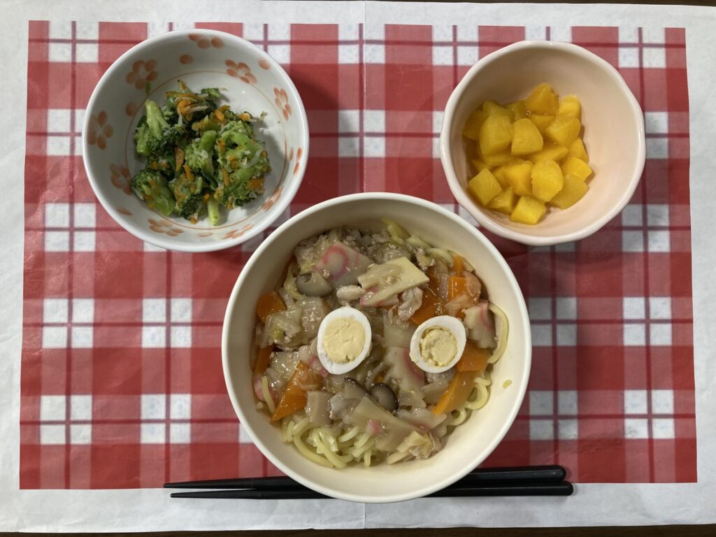 お知らせ 特別養護老人ホーム(特養) ソフィア輝 五目うま煮麺🍜 2025年10月23日 先日の昼食は五目うま煮麺でした😊 献立は 〇五目うま煮麺 〇ナムル 〇黄桃缶 五目うま煮麵は具材たっぷりで食べ応えあり、おいしかったです😋 寒くなってきたので温かい物が食べたくなりますね💕 いいね (2) 感謝祭②🥰 水槽(お知らせ)