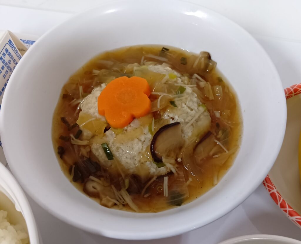 きのこ入りのあんかけがたっぷりかかったハンバーグは、おいしく、からだも温まりました✨