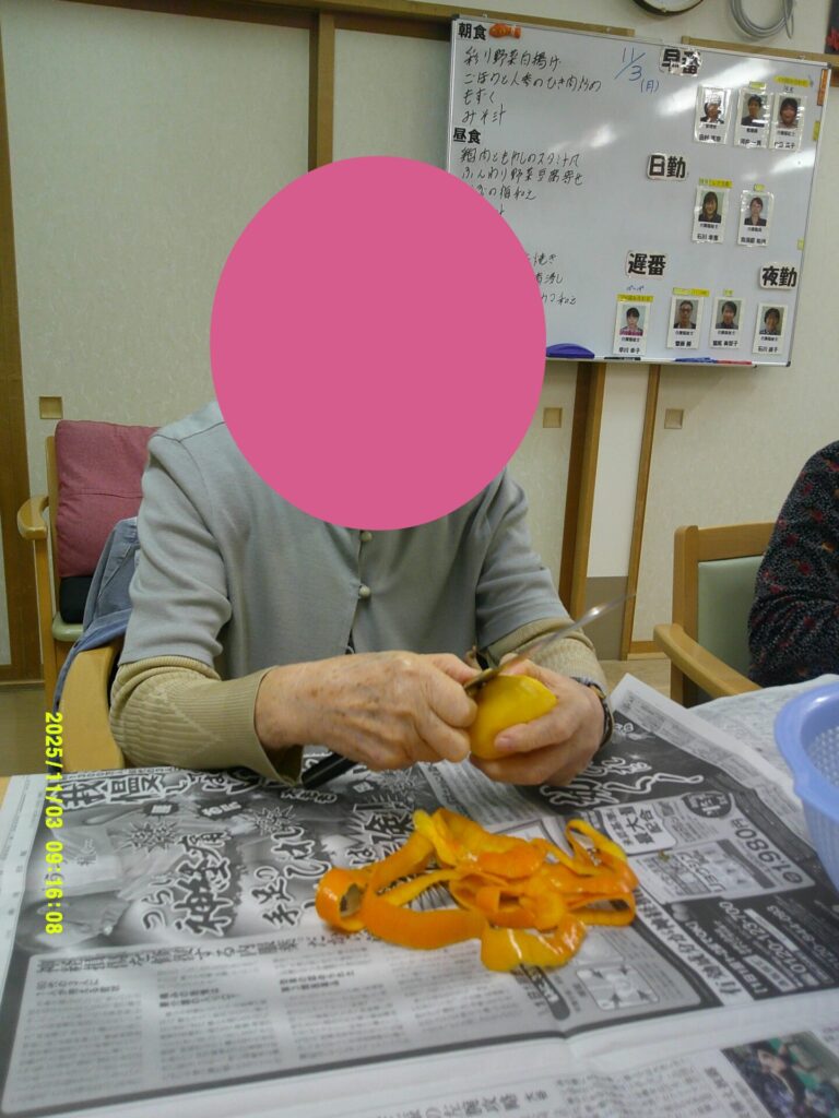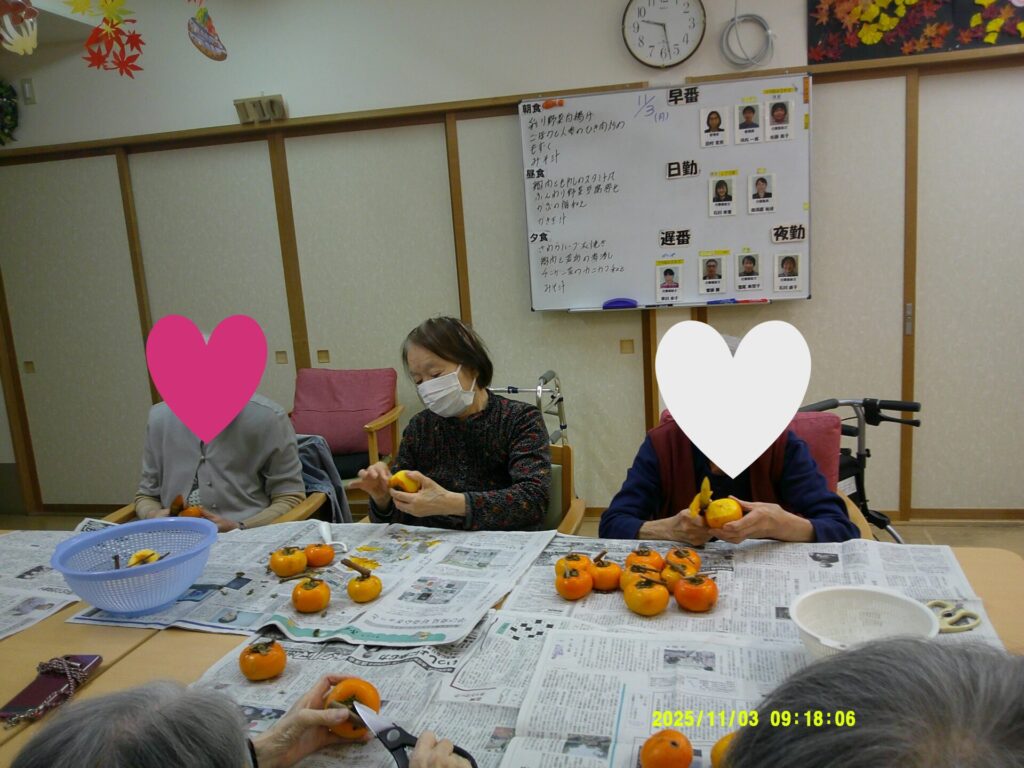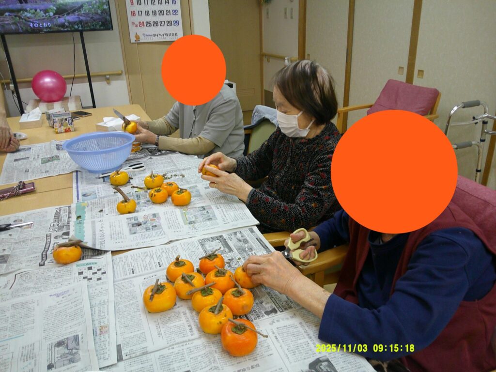 お知らせ なじみの家 きなせや内野 🍂🍂🍂干し柿作り🍂🍂🍂 2025年11月04日 今回は、干し柿作りを行いました🍁🍁🍁 利用者様も参加し頑張っています 皮をむいたりヘタを切り取ったり 皆さん頑張って下さいました💕💕💕 Digital Camera 美味しくできますように🥰🥰🥰 いいね (6) 文化祭見学してきました 玄関を華やかに🌼
