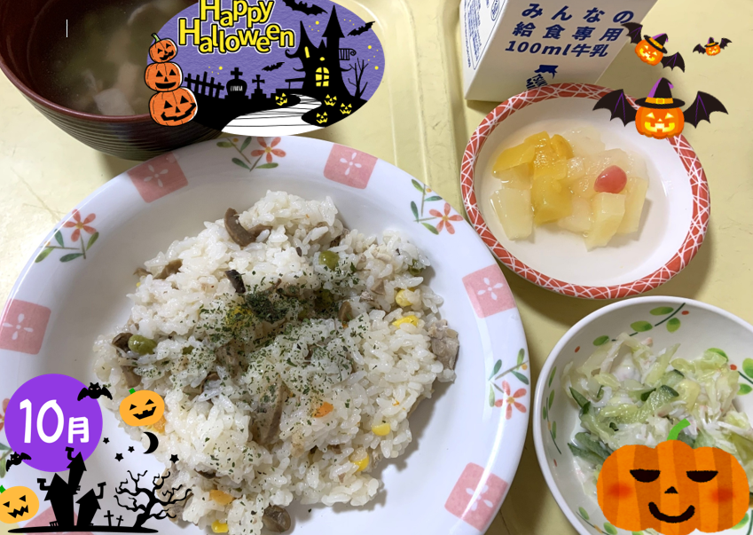 食堂にはハロウィンの飾り物もあり楽しいひと時となりました。