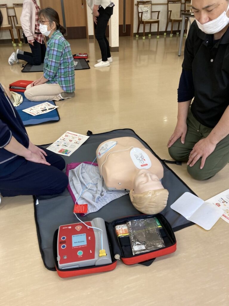 西消防署の方に来ていただき、AED講習を実施していただきました。