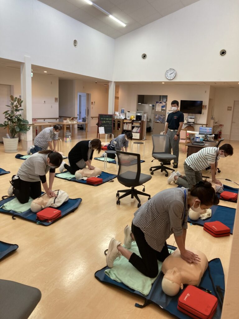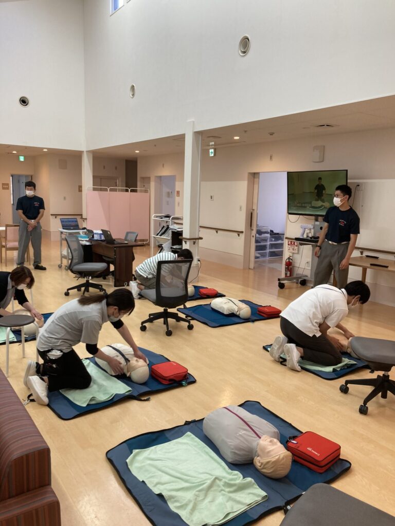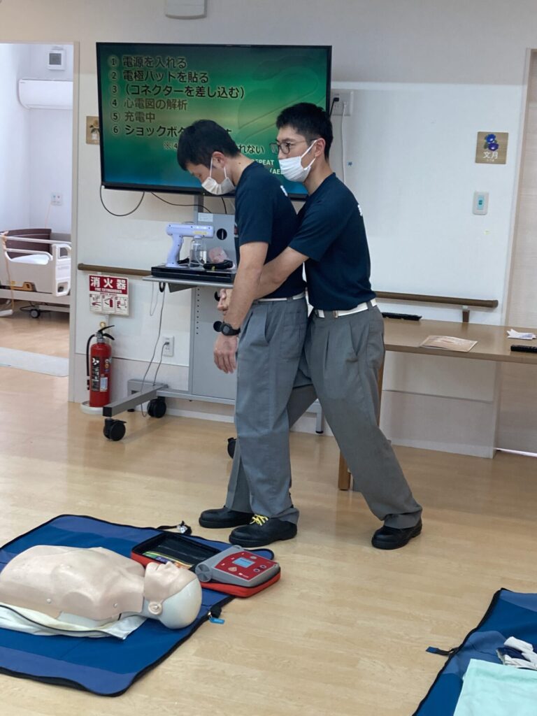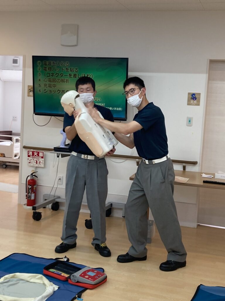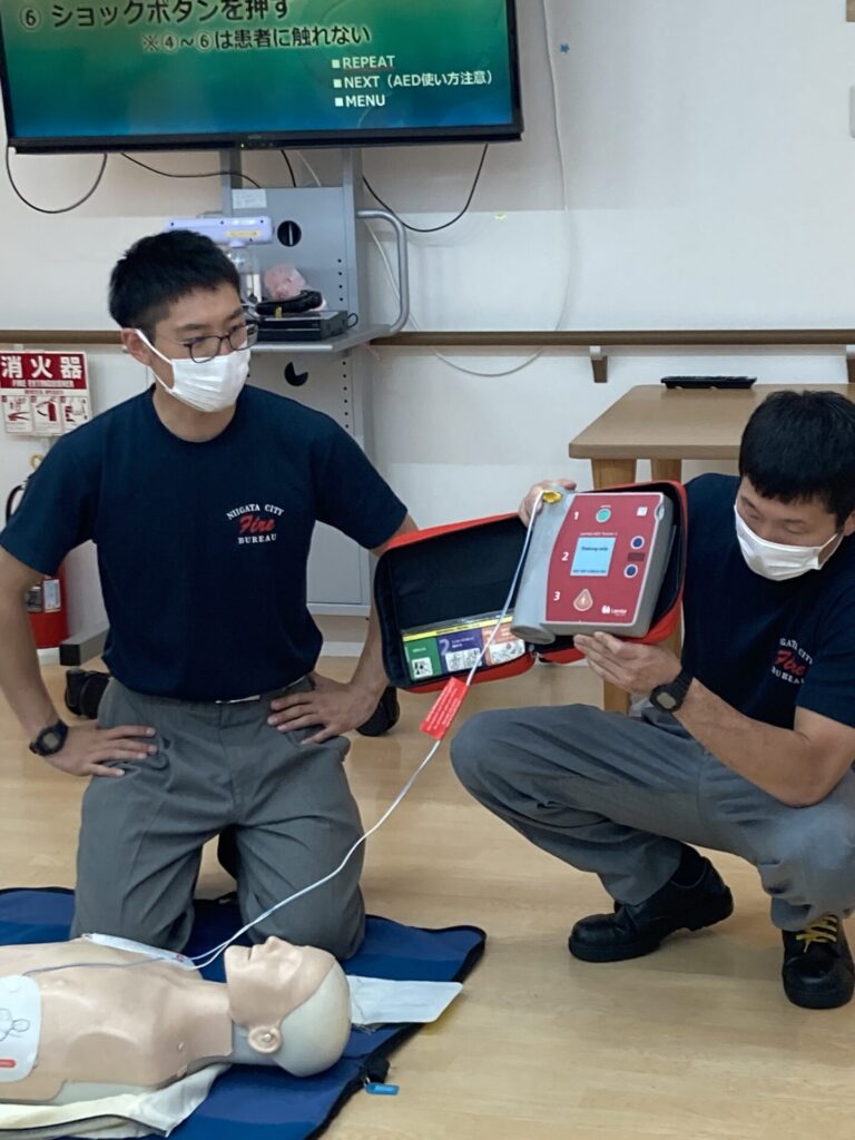 定期的に心臓マッサージ、AEDの使い方を勉強してます。