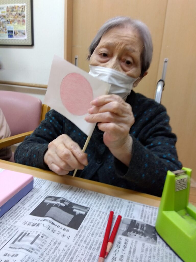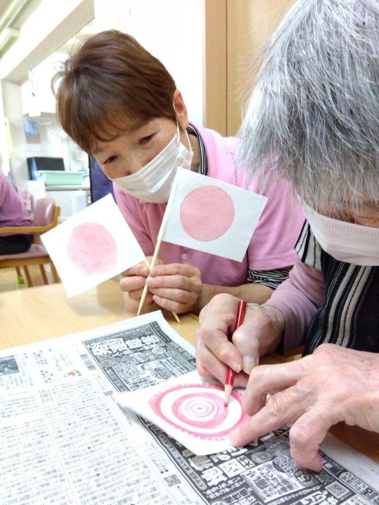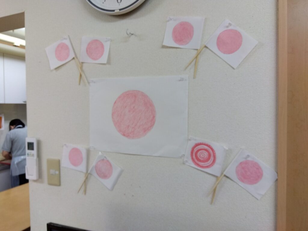 祝日を前にして利用者と国旗を作成しました。🎌🎌