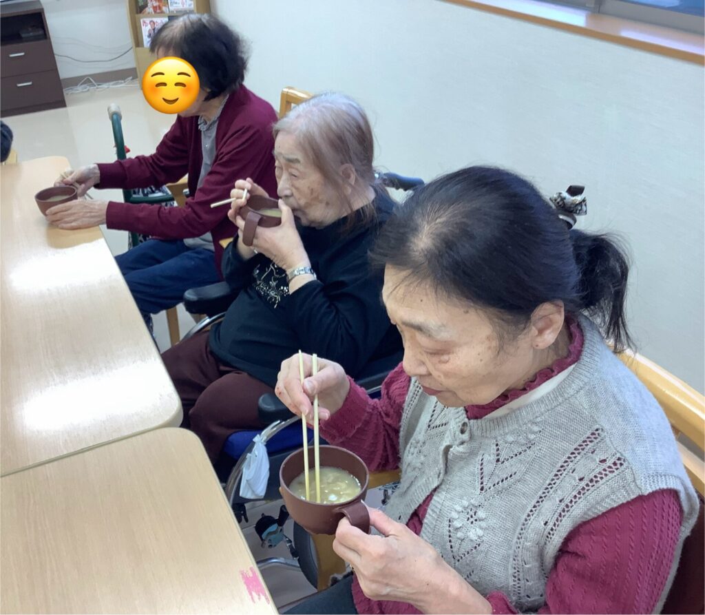 この日は気温が低くちょうど温かいお味噌汁が飲めておいしいと話されていました☺