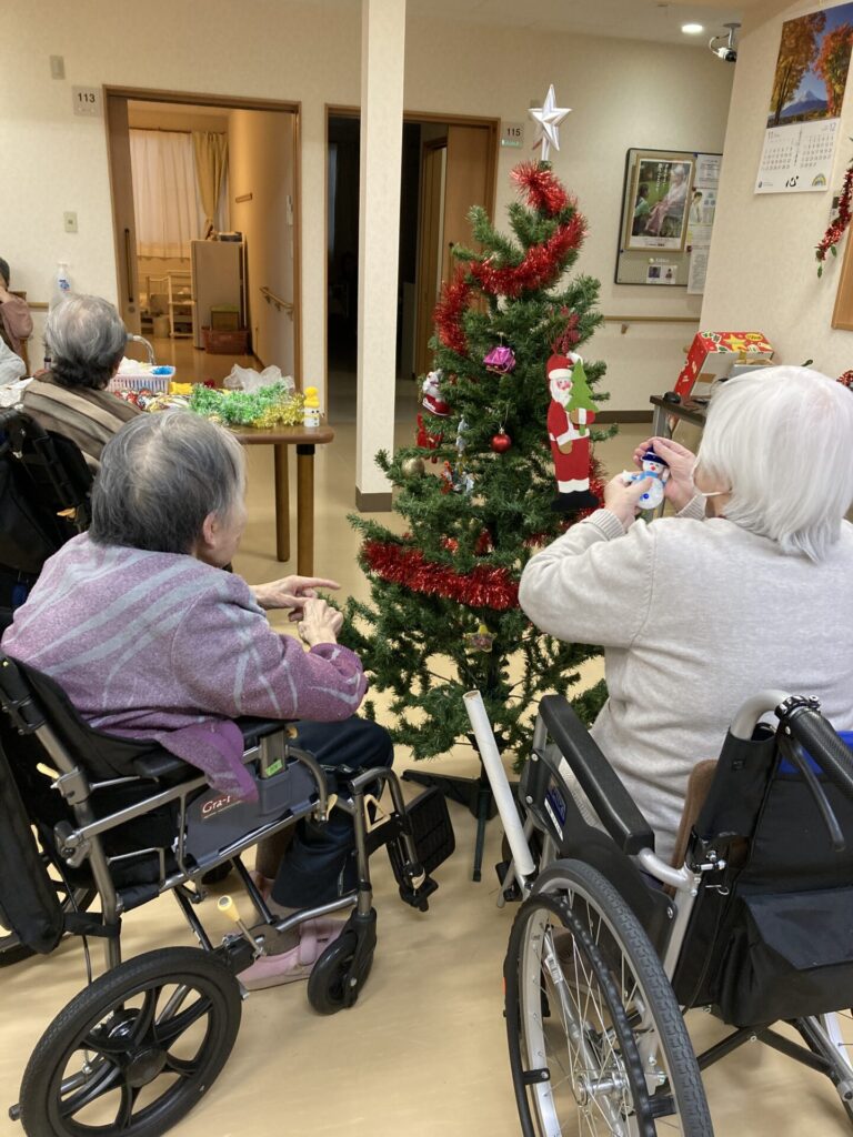 先日、きなせや・オードヴィーの各ホールにクリスマスツリーの飾りつけを利用者様の皆さんと一緒に行いました♬