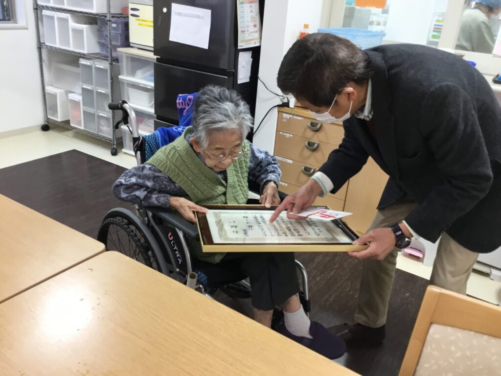 お知らせ なじみの家 きなせや亀田中島 11月誕生日🎂 2025年11月27日 11月お誕生日のお2人です。スタッフからのプレゼントにとても喜ばれていました♪ お1人は100歳のお祝いに区の自治体から賞状を頂きました♪おめでとうございます🎉 いいね (10) 干し柿食べました 体重測定