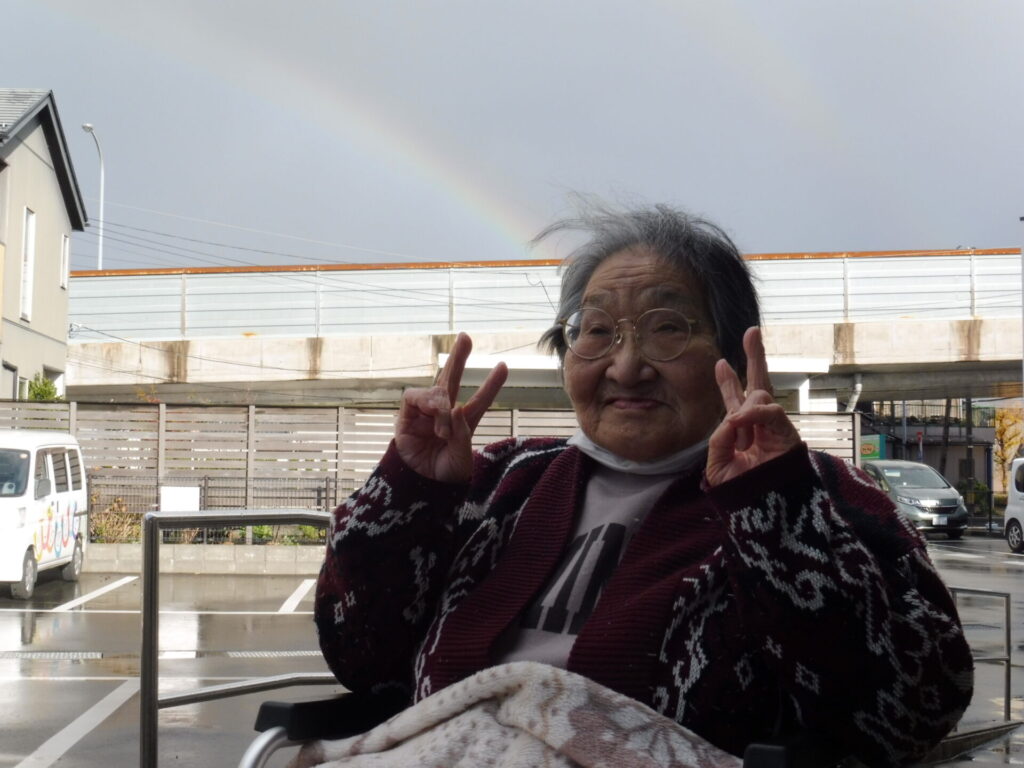 さて、本日晴れ間が見えたとき、ご利用者様と外に出たところ、、、、