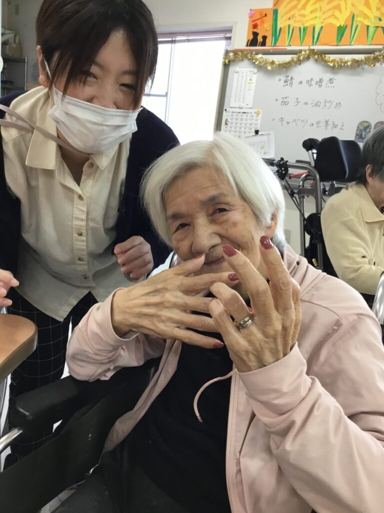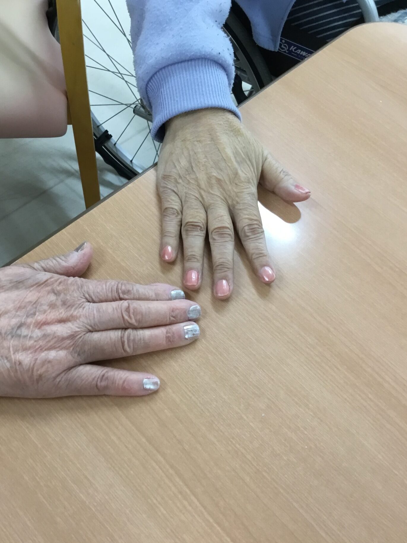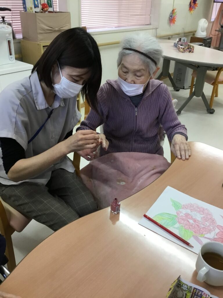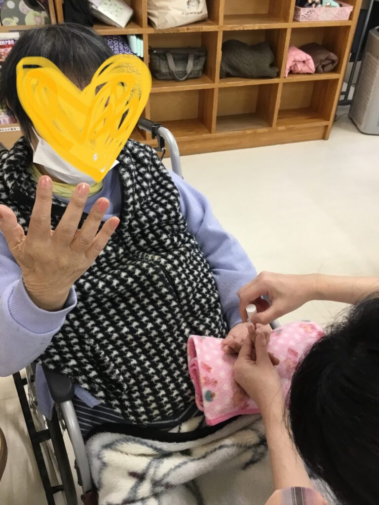 先日、レディースディということで利用者様とマニキュアを楽しみました。