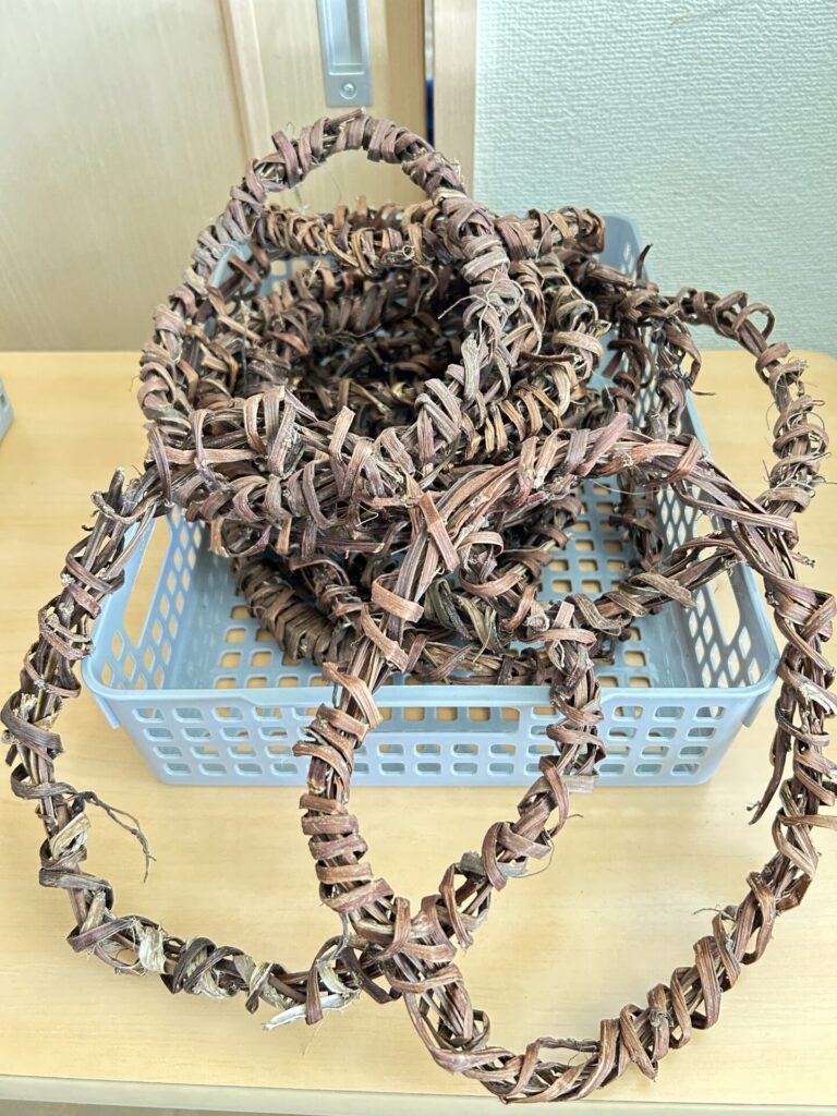 サツマイモを植えて、弦を食べ、芋を食べ、そして弦をリースに活用