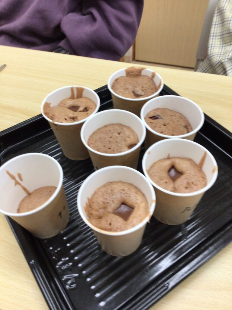 お知らせ 通所リハビリテーション 江風苑リハビリセンター100 本日の作業活動 2025年12月15日 本日はお菓子作りに挑戦 よく混ぜて チョコをトッピング レンジでチンで、大成功 いいね (7) 🎂お菓子作り🎂 🎄クリスマス飾り🎄