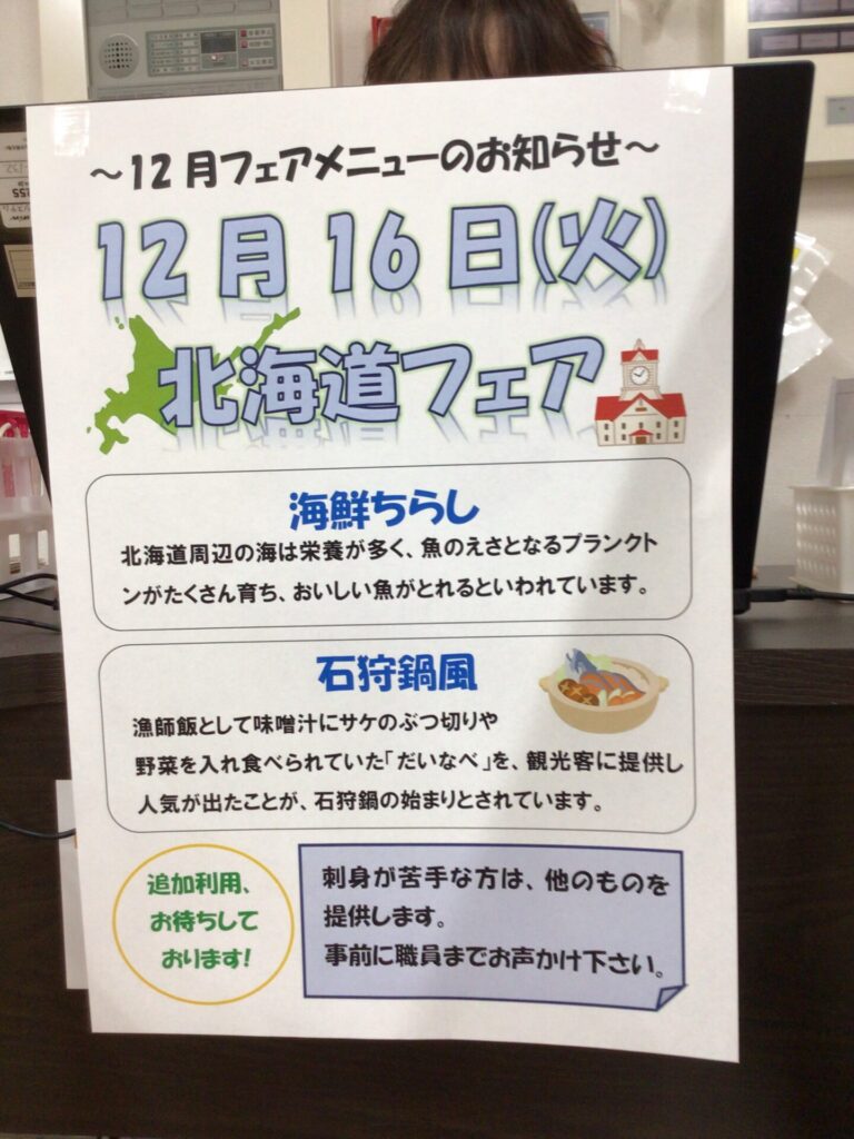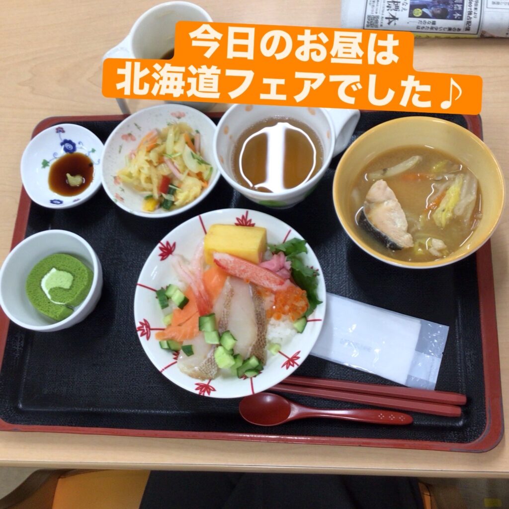 お知らせ 通所リハビリテーション 江風苑リハビリセンター100 本日の昼食は北海道フェアでした♬ 2025年12月16日 北海道の海の幸をふんだんに使用した海鮮丼を皆様に堪能していただきました😋 いいね (7) 🦌🎅12月壁絵🎄🐻 🍊みかん🍊