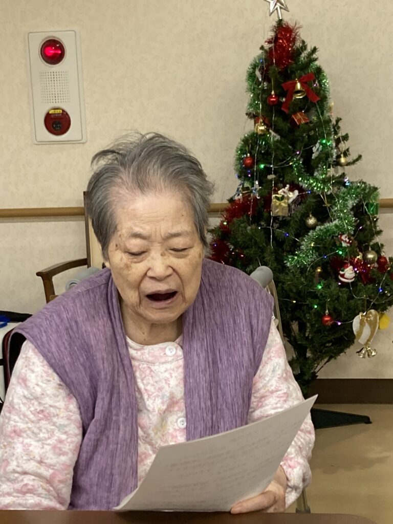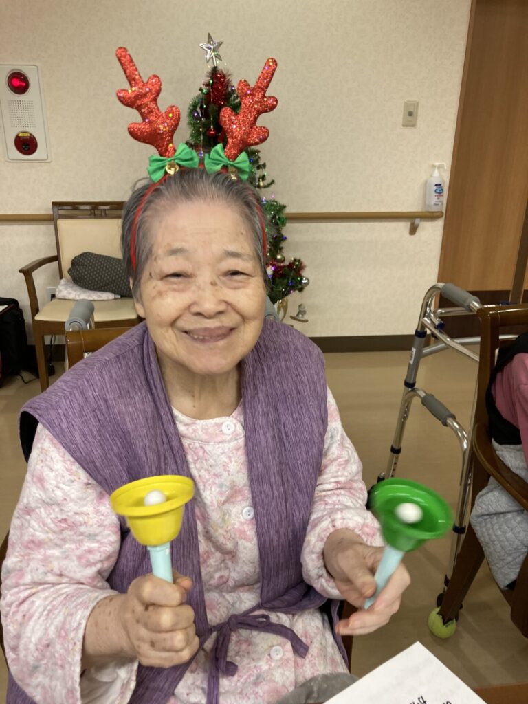 職員のハンドベル🔔に合わせて利用者さまにジングルベルときよしこの夜を歌って頂きました🥰