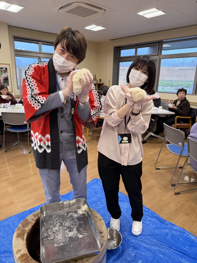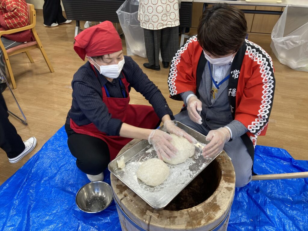 リバーサイド輝の佐藤施設長とソフィア輝の坂井施設長で鏡餅作りです😆