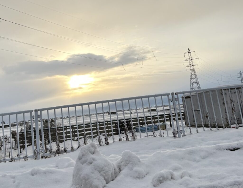 荻川周辺はどんより雪模様だったのですが、青空に照らされ、真っ白に浮かび上がる弥彦山とてもきれいでした