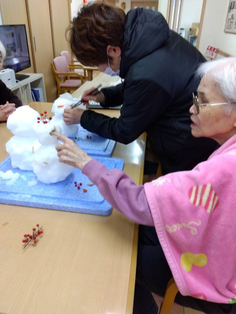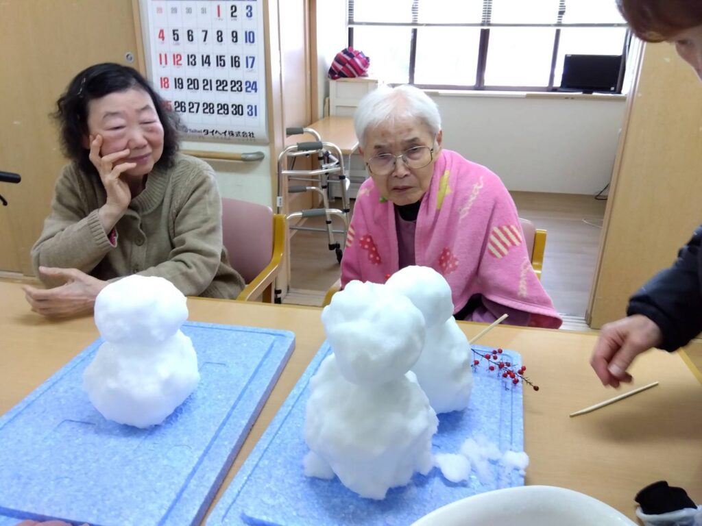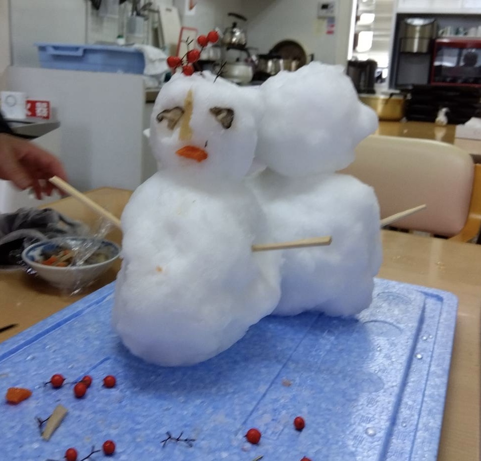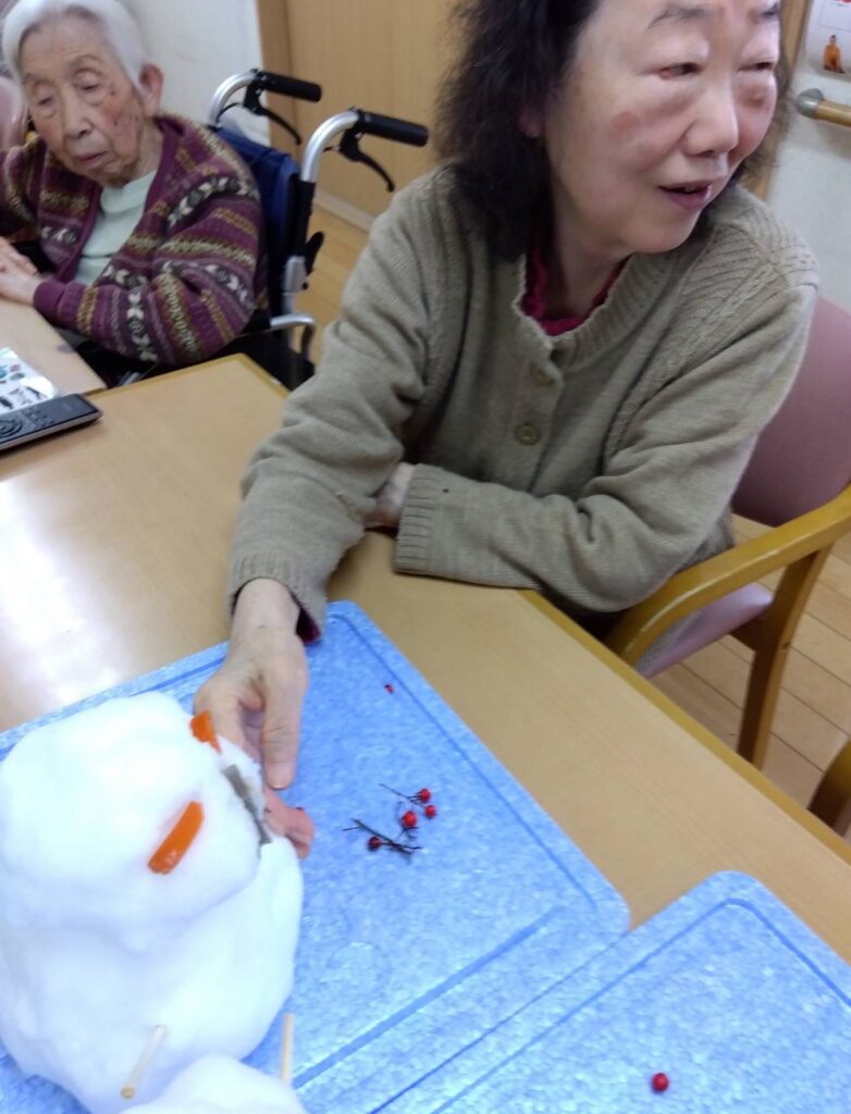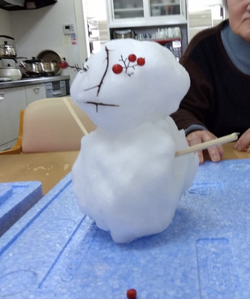 「寒いわ~」とブランケットを肩から掛けてゆきだるま作りに取り組まれていました