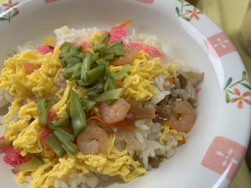 彩り豊かなちらし寿司は、見た目にも華やかで「お正月らしくて嬉しいね」と多くの方に喜んでいただけました。