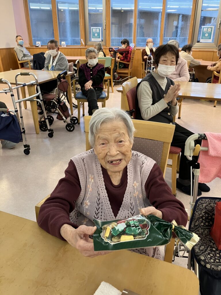 袋を開ける時のワクワクした表情、そして中身を見て「ちょうど欲しかったの!」「大切にするね」と喜んでくださる姿に、私たち職員も温かい気持ちになりました。