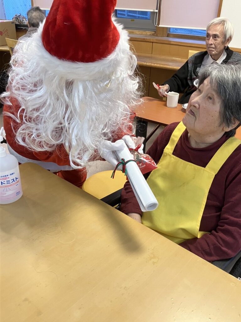 サンタ(に扮した職員)から一人ひとりへ心を込めてプレゼントを手渡しました。