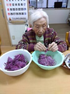 このメニューの中には春ご利用者様と綿を取って、干して、乾燥して保管していた
