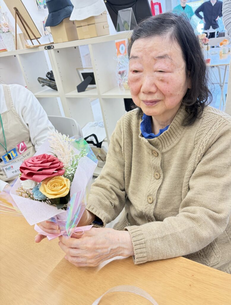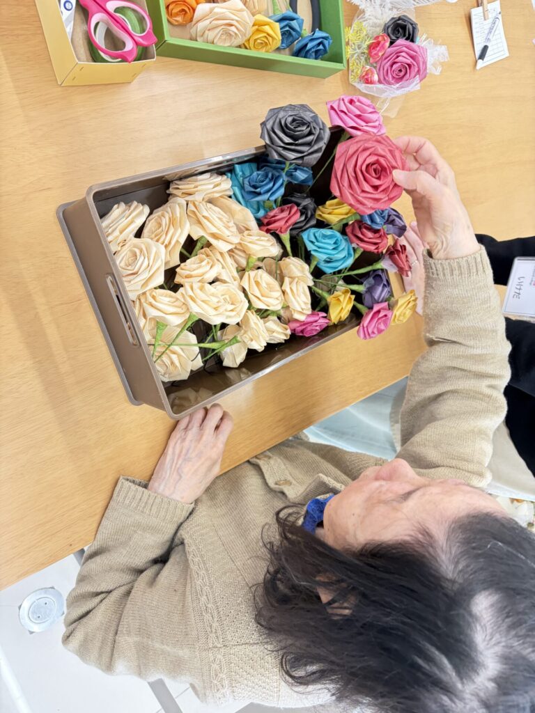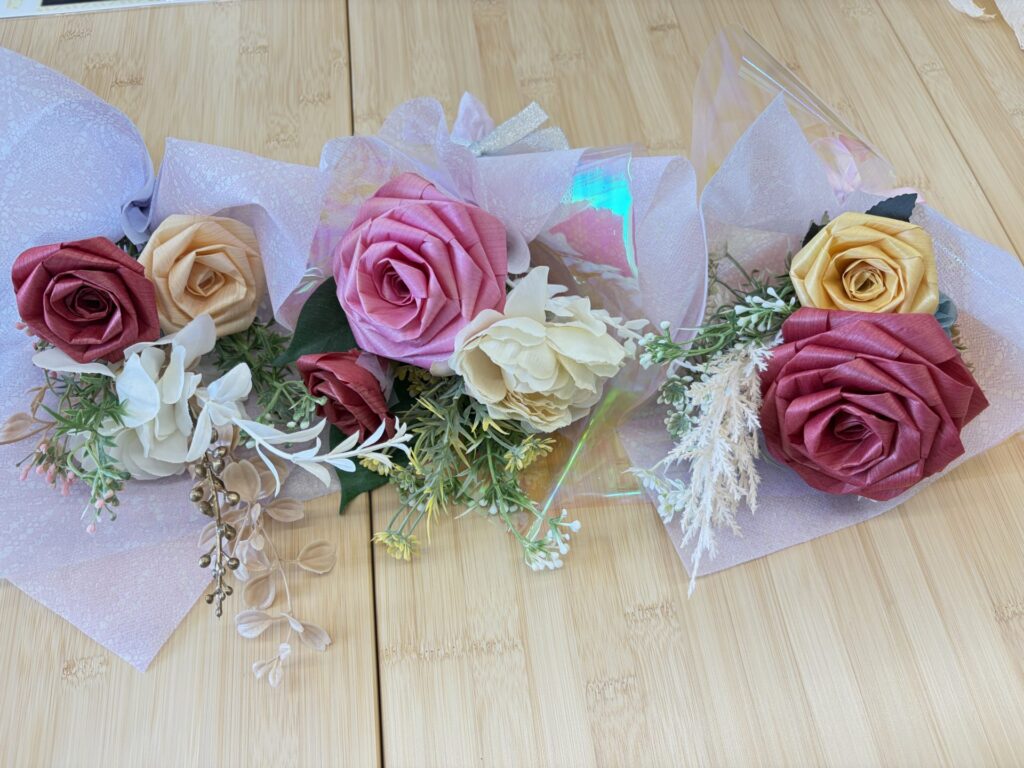 本日は桧で作ったバラをモチーフにした花束作りに挑戦しました