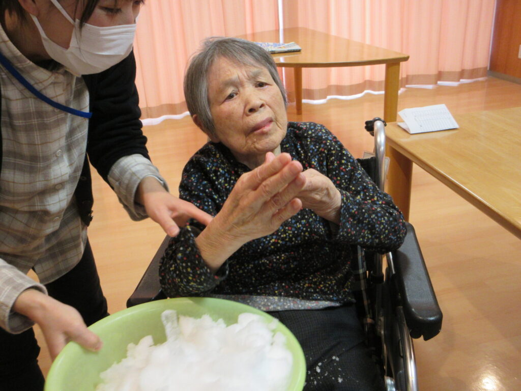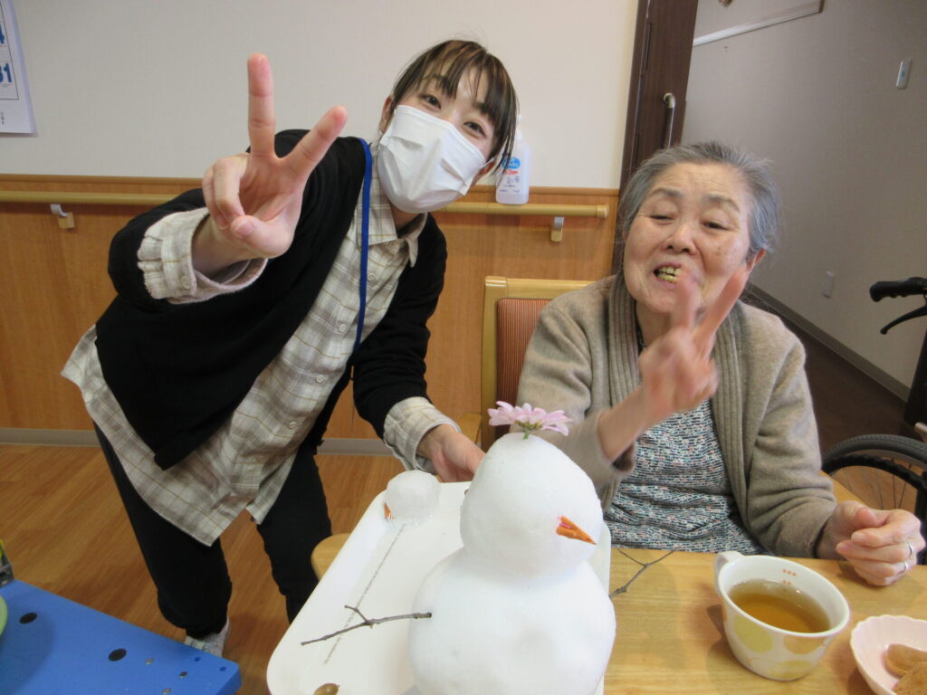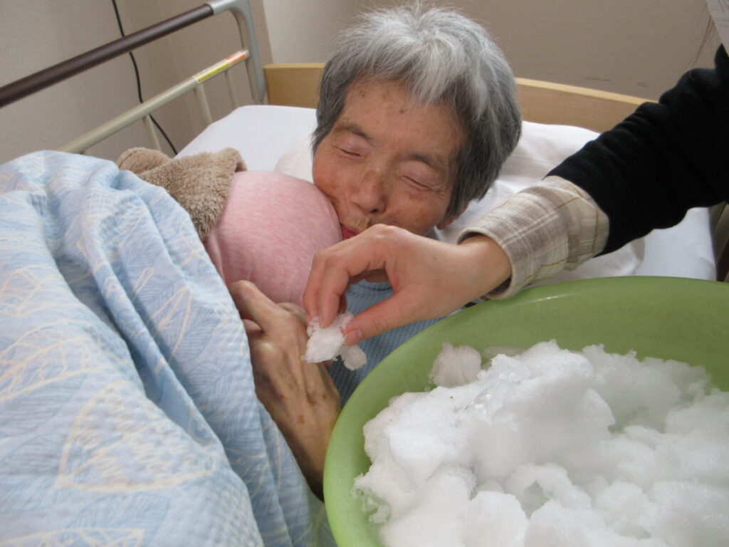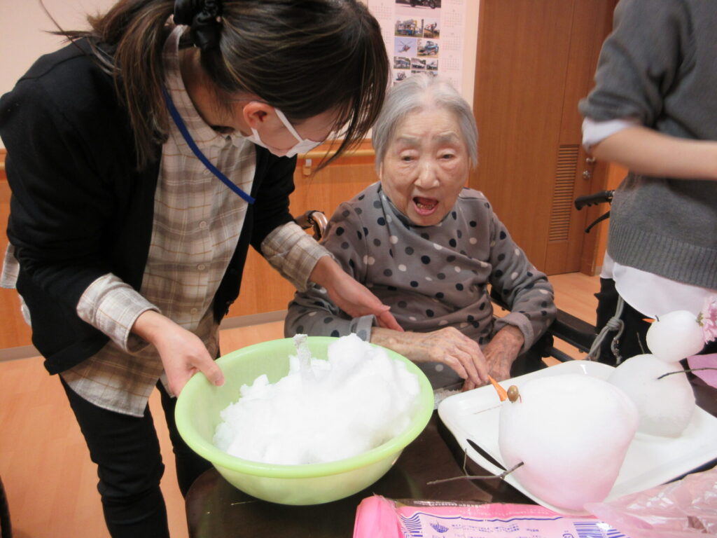 なかなかこの時期、外出できないご利用者様にも雪を感じてもらいたく考えた末。。。