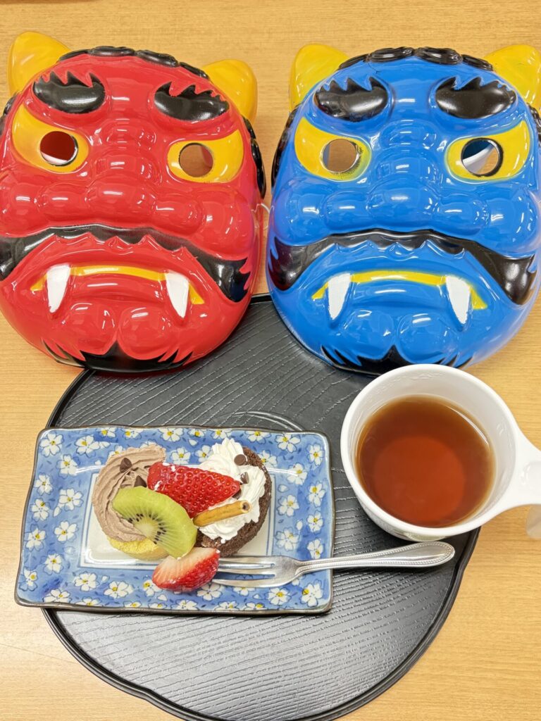 鬼退治のあとは おやつを召し上がっていただきました