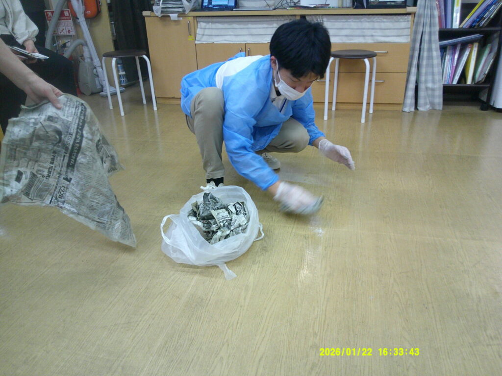 先日、職員会議後【吐物処理研修】を実施しました。