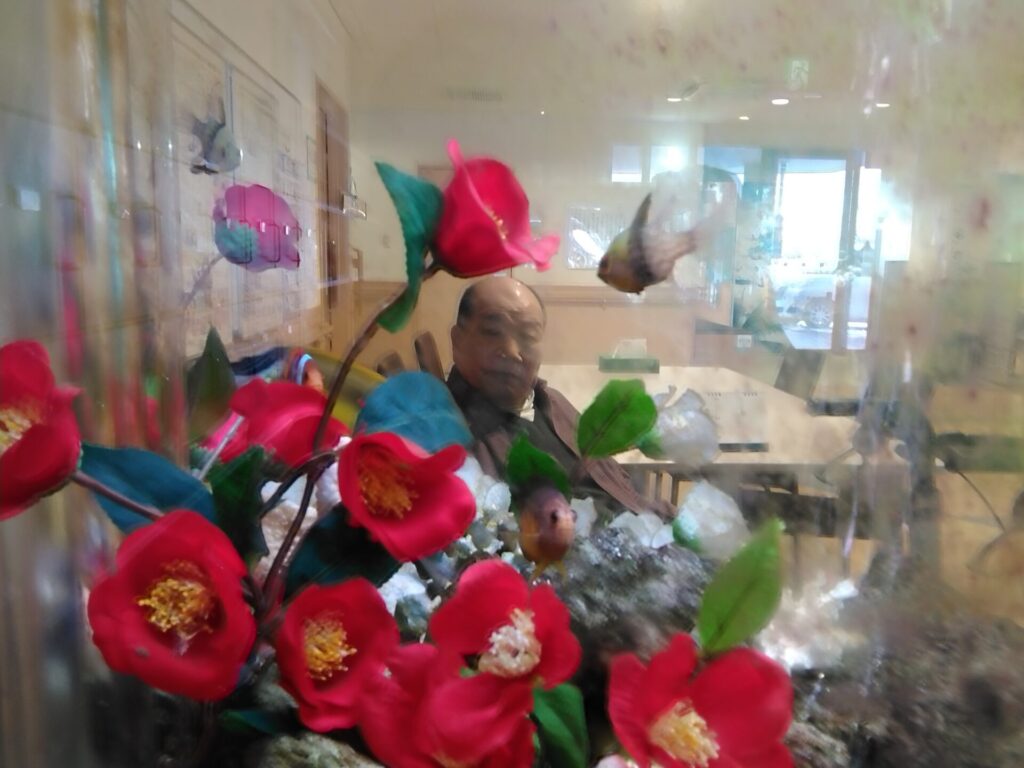 手の込んだ水槽は珍しく人目を引くため、ご利用者様、ご家族様との会話の種にもなりますね