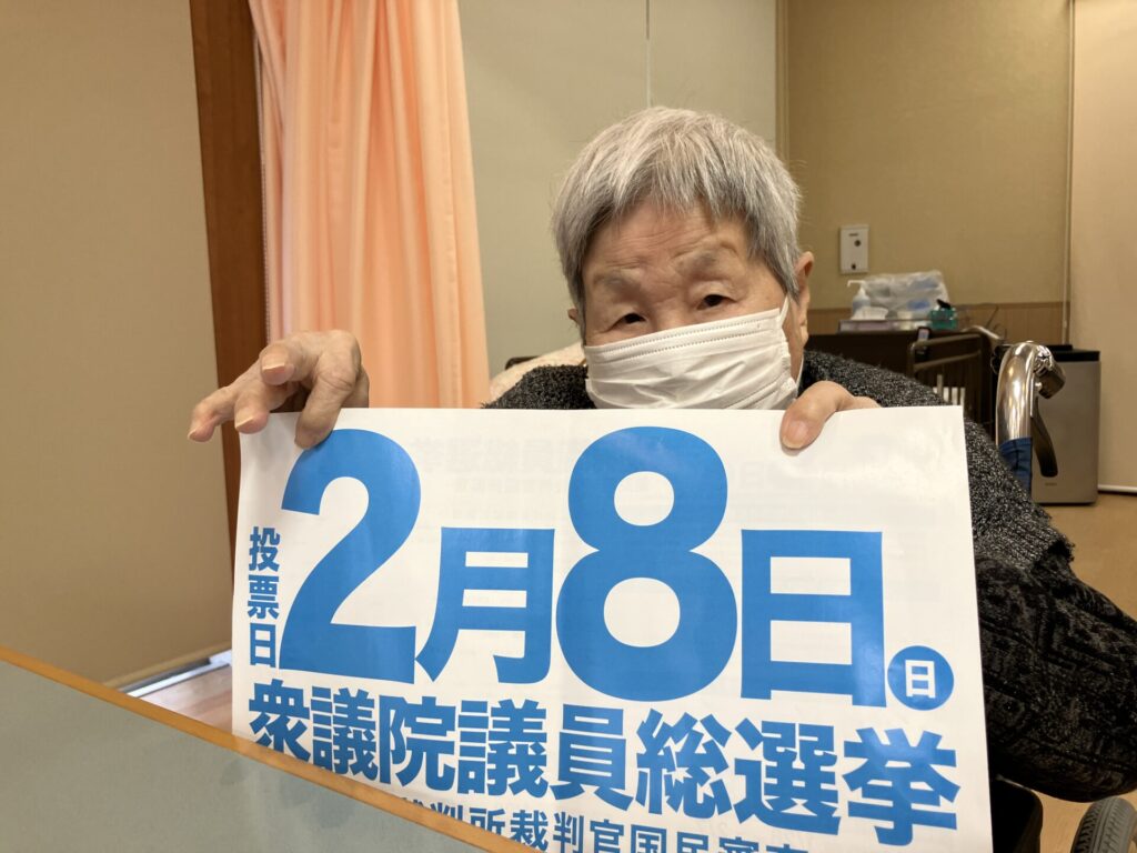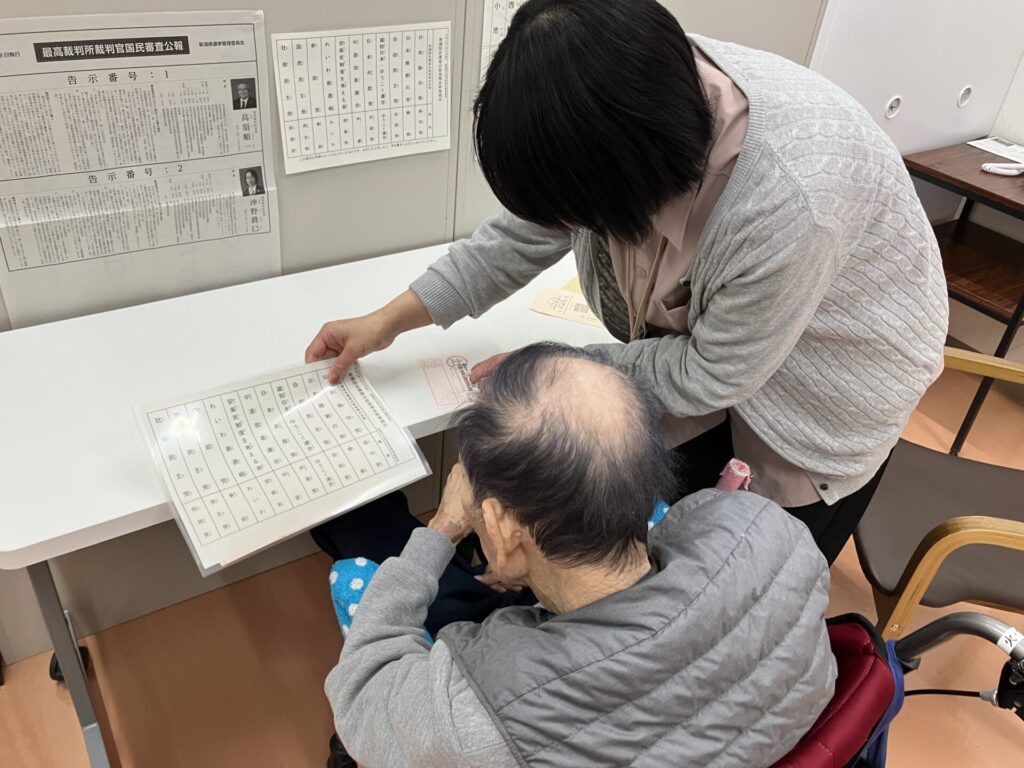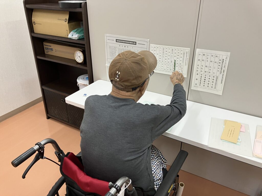 サンパレス輝では会場に足を運べない御利用者様のために不在者投票を行いました。
