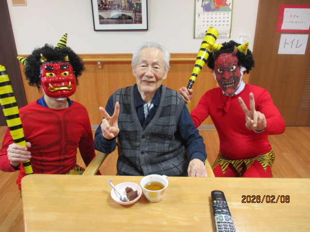 お知らせ せきやの里 👹記念撮影📸 2026年02月12日 こんにちは😊せきやの里です! 先日、節分の豆まきで、せきやの里のご利用者様の無病息災を願った後に 鬼たちと記念撮影を行いました💕 皆様の素敵な笑顔で福を呼び込めました✨ いいね (1) 個別求人説明会&見学会を開催いたします🌟