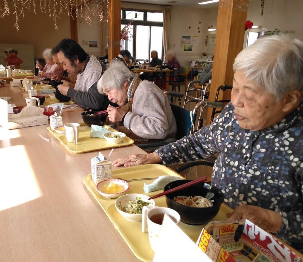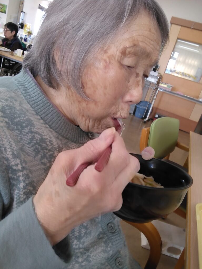 江風苑のうどんには、大根や人参などの根菜がたっぷり入っています。