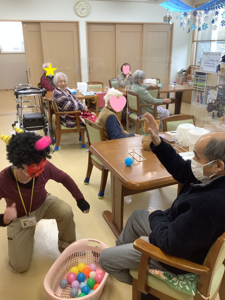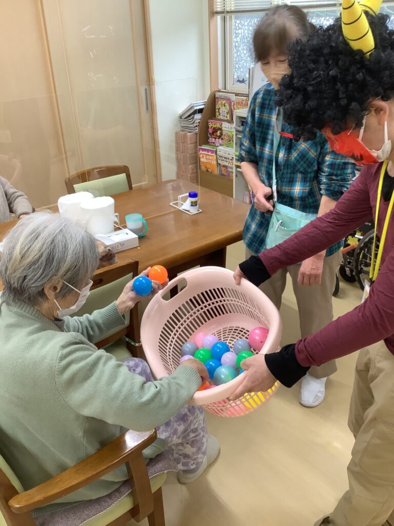 イベント 小規模多機能型居宅介護 きなせや坂井砂山 2月 節分行事 2026年02月22日 坂井砂山では節分行事として豆まきならぬボール投げを行いました!! 「鬼は外、福は内」の掛け声とともにボールを投げています。 ボール投げの後はおやつにどら焼きを召し上がられました!! いいね (2) 令和8年 第4回栄養士部会を開催いたしました 個別求人説明会&見学会を開催いたします🌟