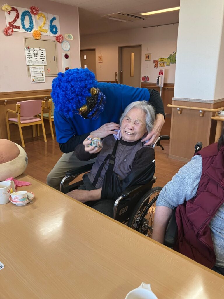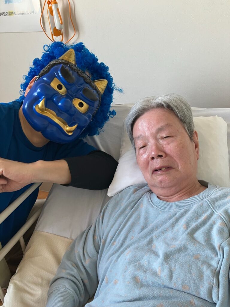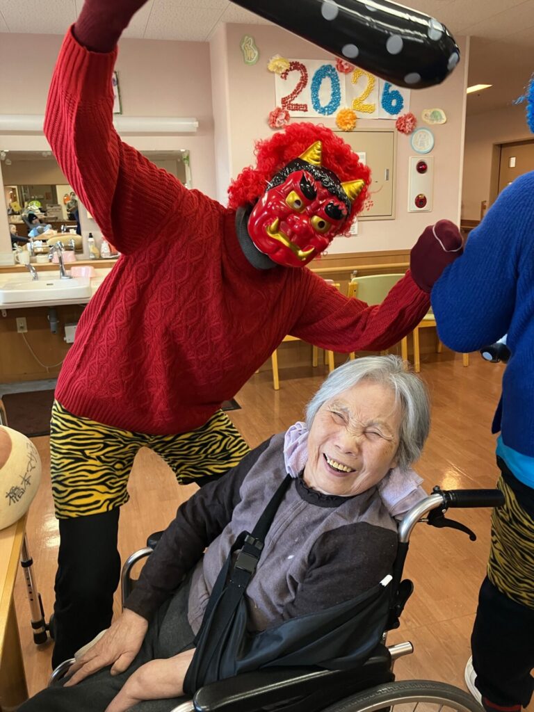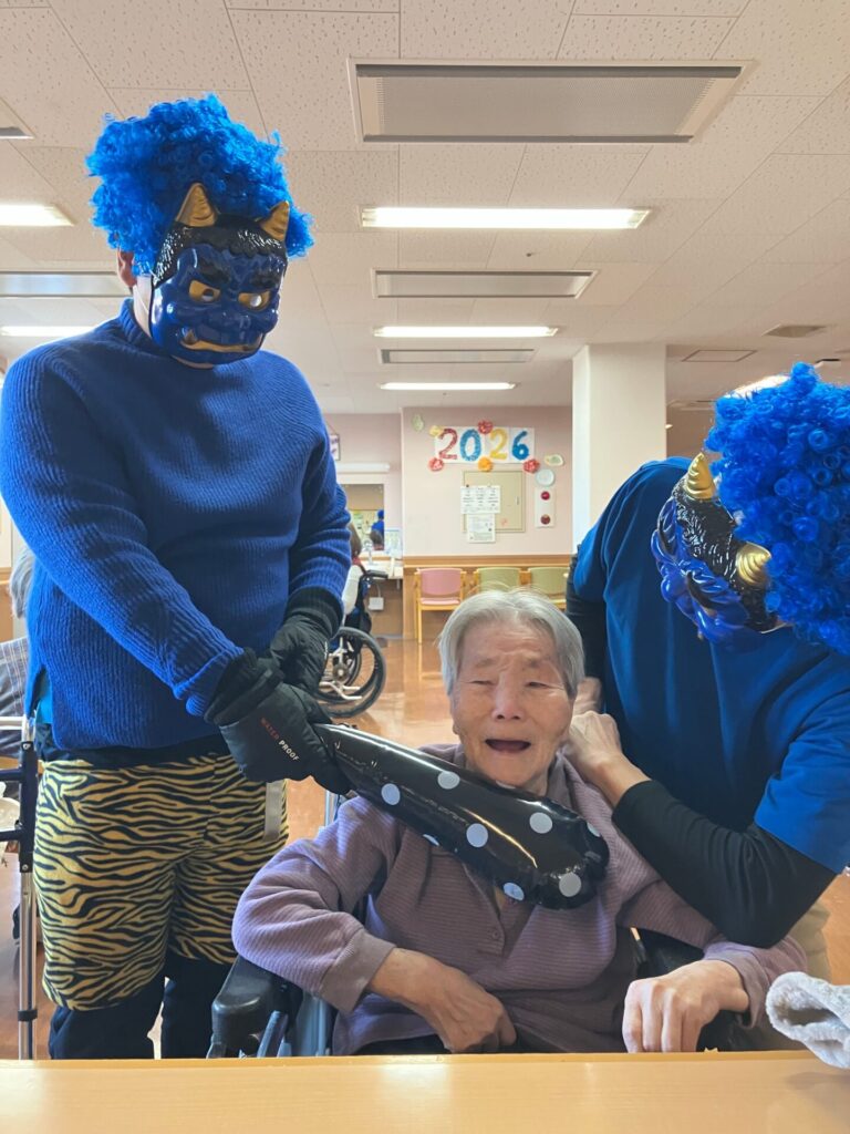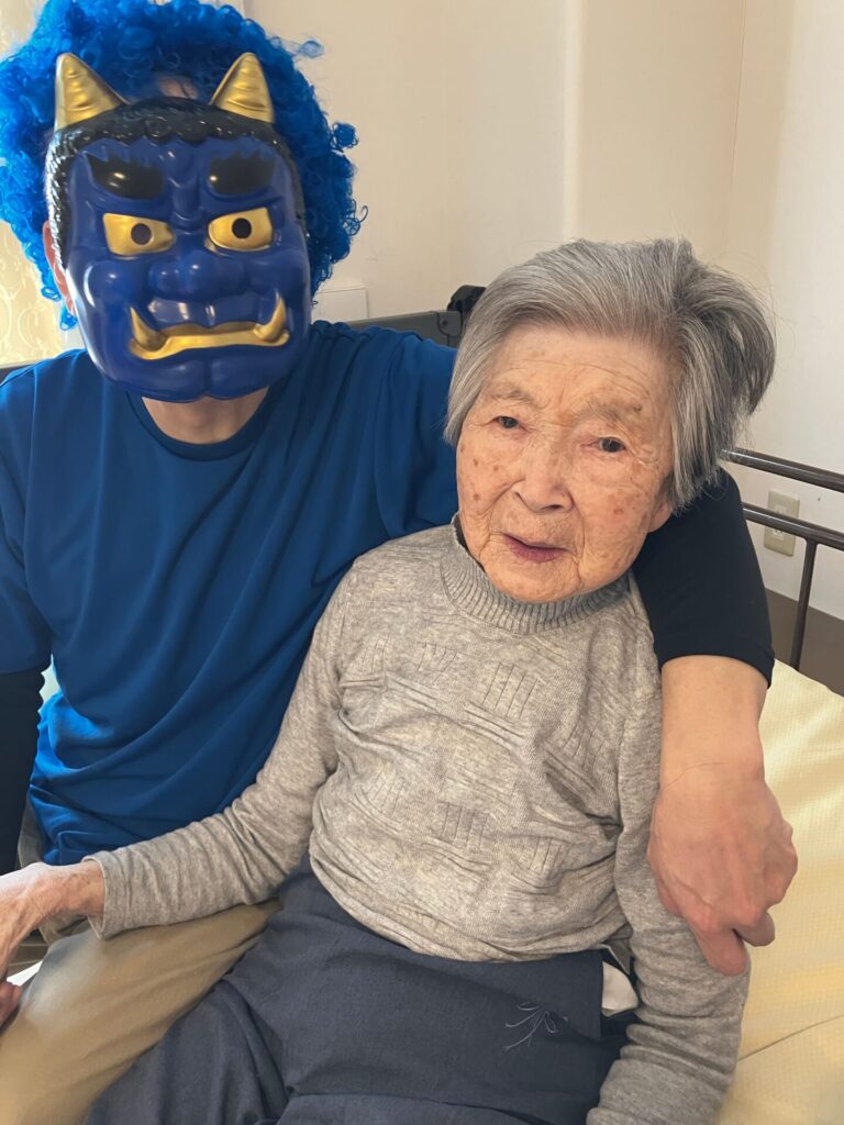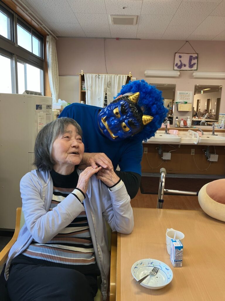 鬼さんの登場に、ちょっとビックリされた方もいましたが、やさしい鬼さんたちは入所者さんたちとも仲良くパチリッ📷いい笑顔がいっぱい撮れました🥰🥰🥰