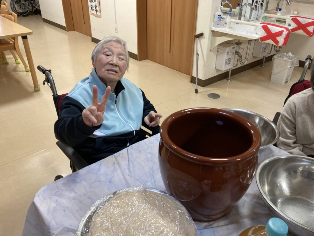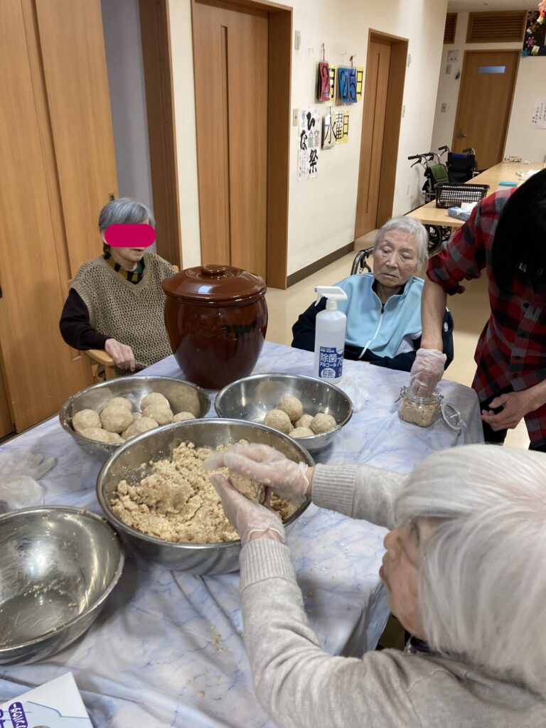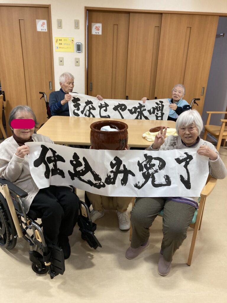 お知らせ 小規模多機能型居宅介護 きなせや小新 味噌作り 2026年02月26日 こんにちは!きなせや小新です(^^♪ 2月25日(水)に味噌作りを行いました 大豆を茹でて潰したものに塩と麹を混ぜて、出来上がった味噌玉を 壺に空気を抜くようにたたきつけて入れていきました(^^)/ 半年後の完成が楽しみですね!! いいね (3) たぬきうどん🍜