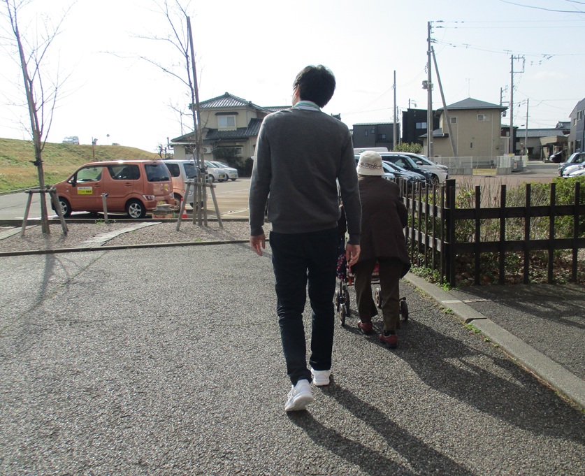 この日は入所者様と、職員が付き添ってゆっくりと散歩へ。