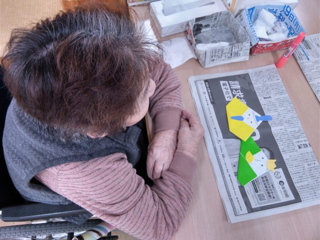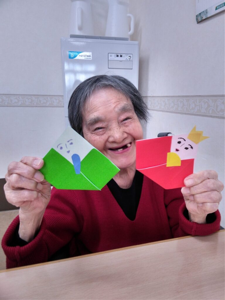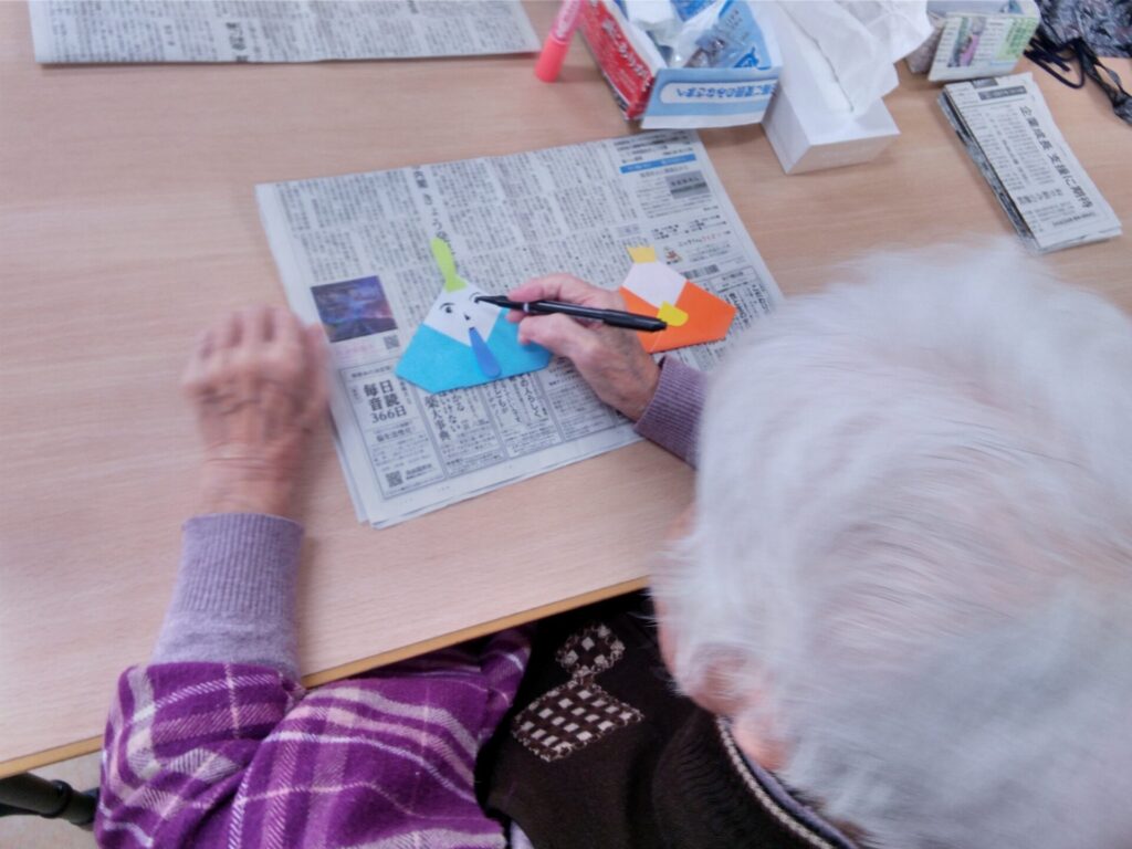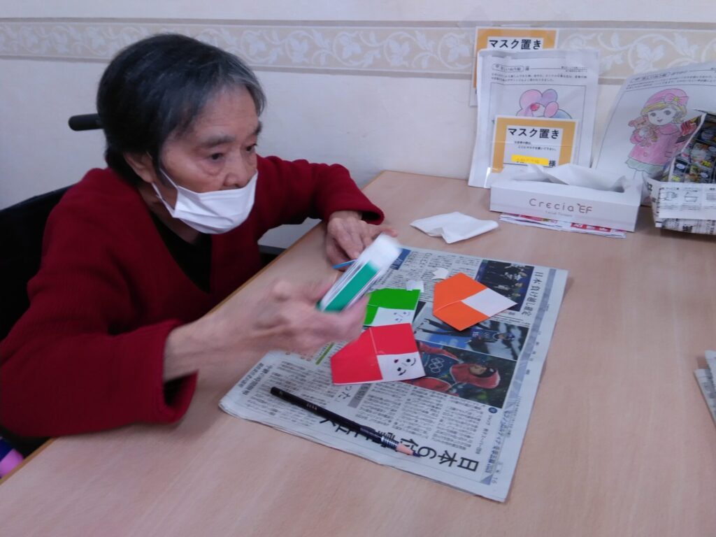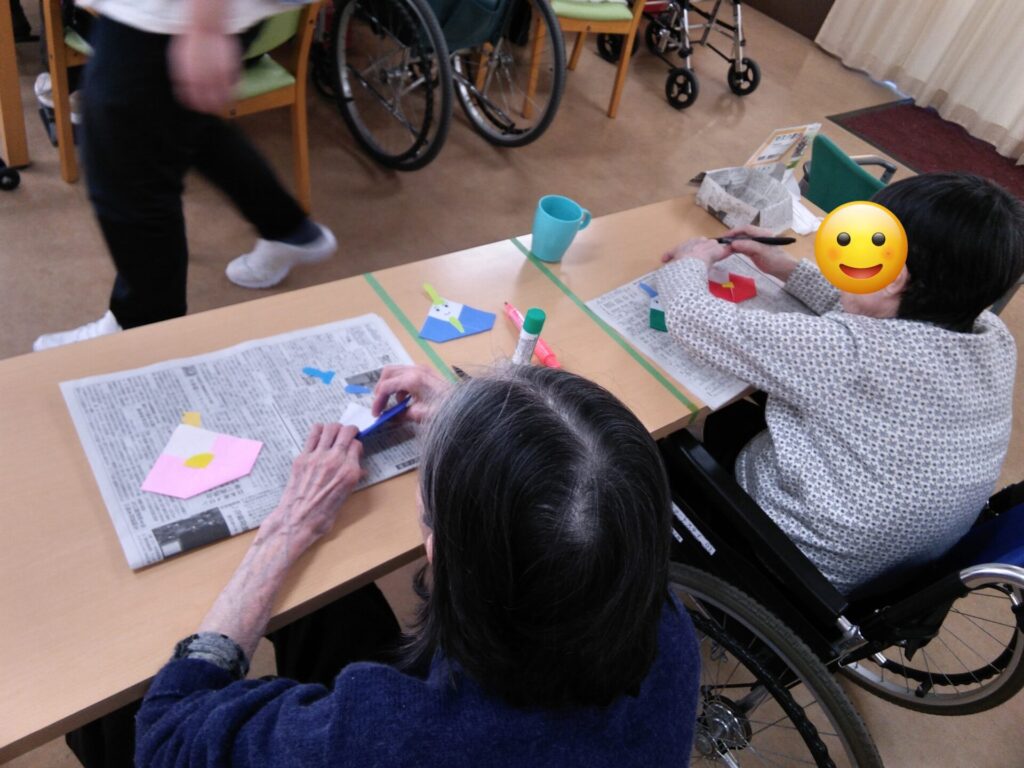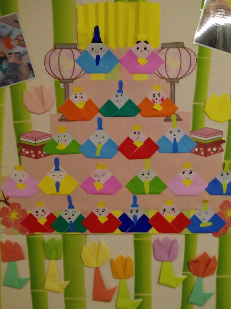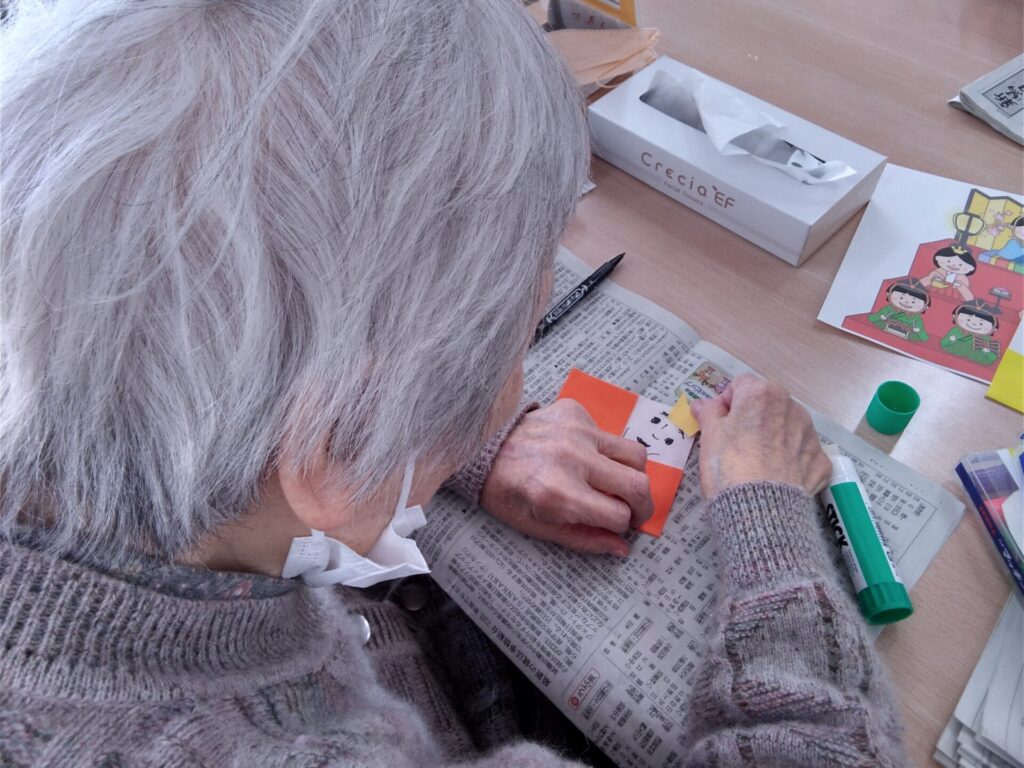 本日は、折り紙で雛飾りを作成した様子をお届けします!