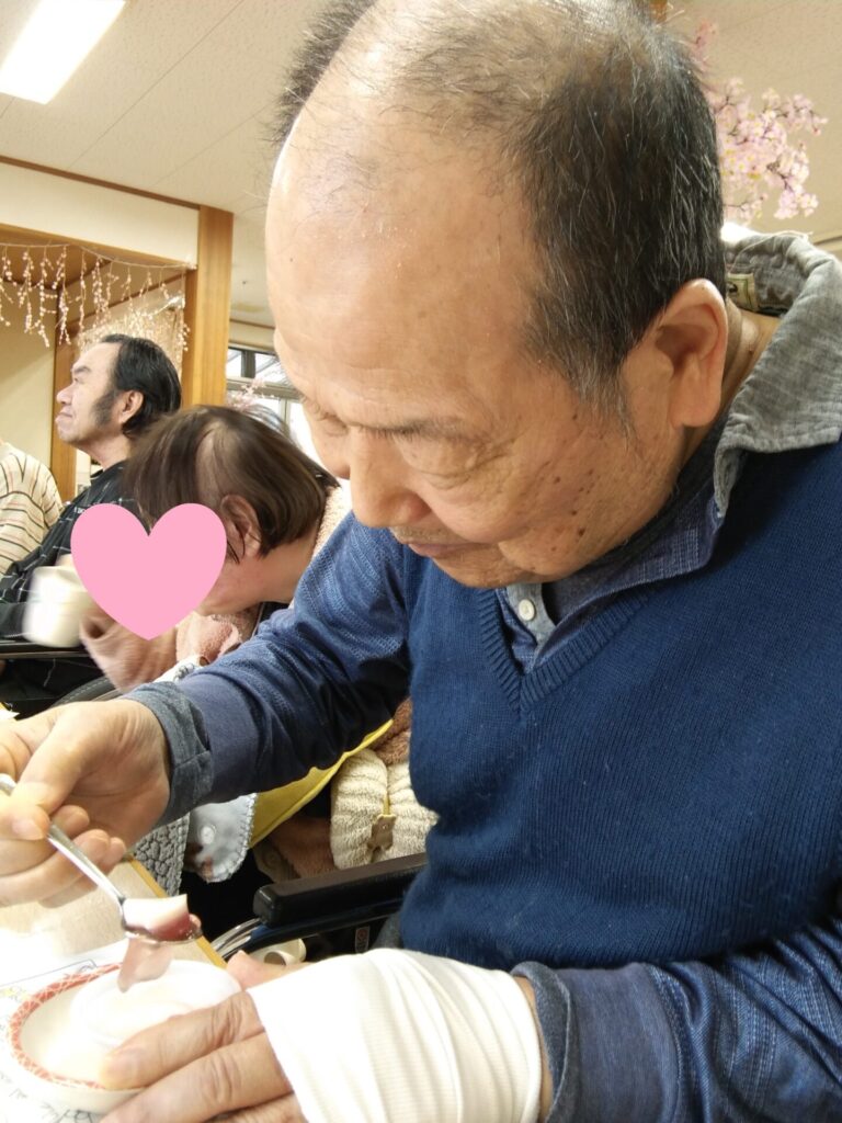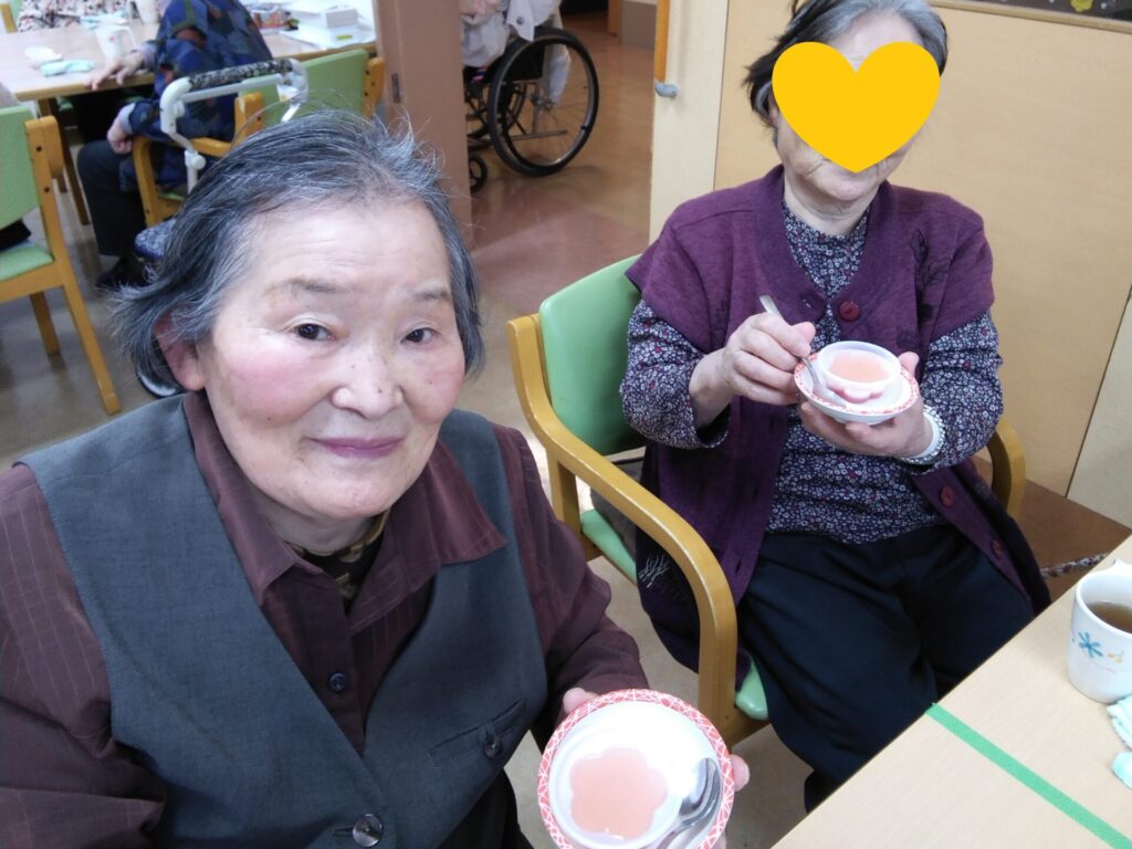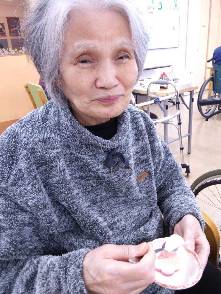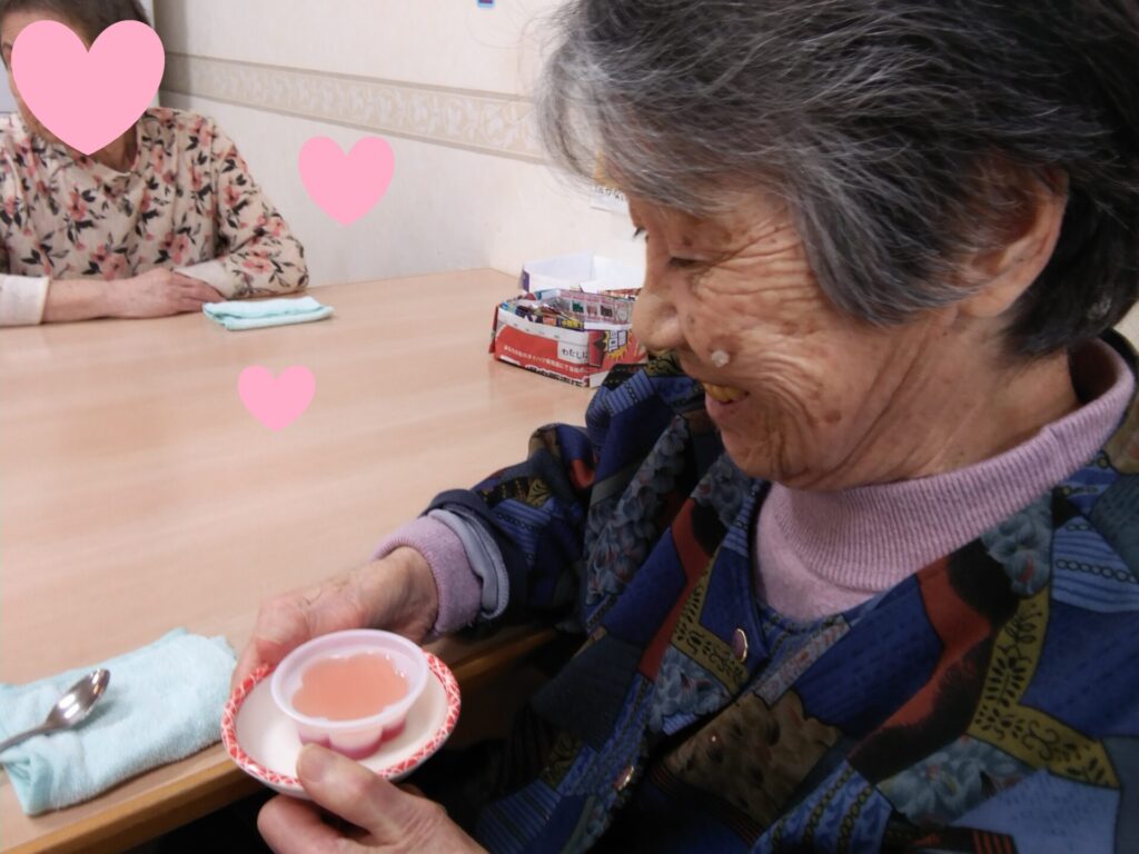ゼリーを提供することで、嚥下の能力が低下している方にも皆さんと同じものを楽しんでいただけました
