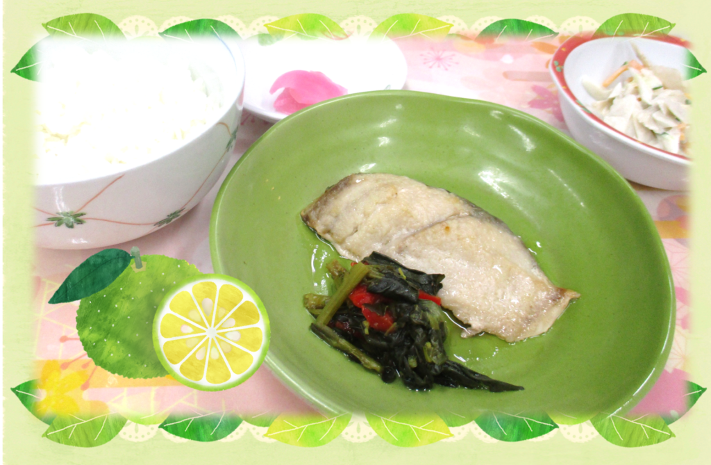 いつもの焼き魚とは少し違う 「魚の柚子胡椒レモン焼き」 をご用意しました❗