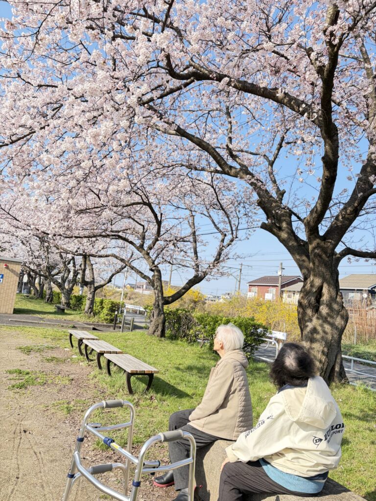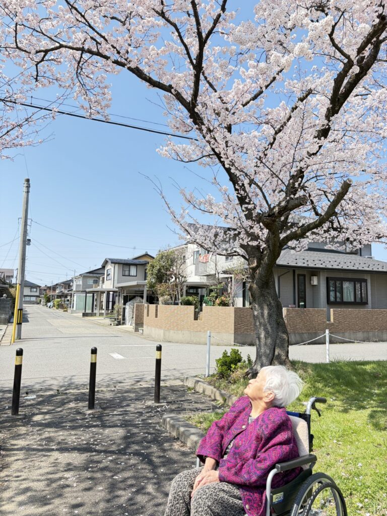 車椅子の方は外の風を感じながら「春のそよ風がきもちいいね~」と